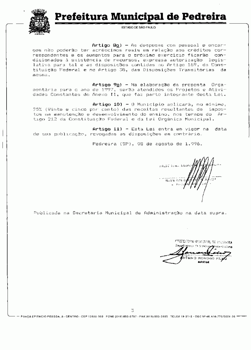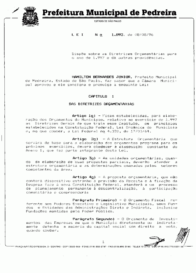 Lei Municipal - N° 1893 de 08/08/1996