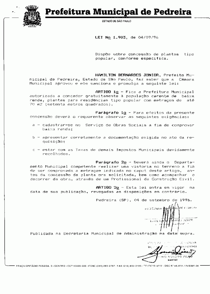 Ementa: Dispõe sobre concessão de plantas tipo popular, conforme especifica.