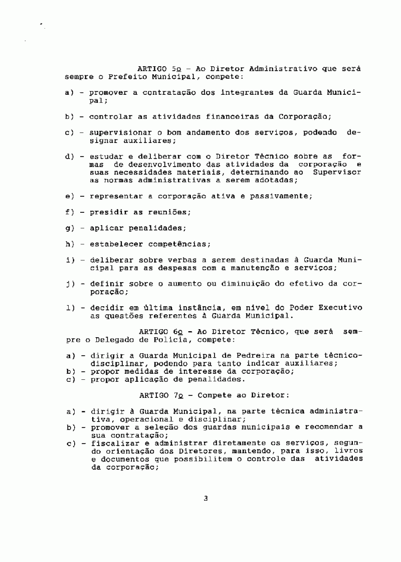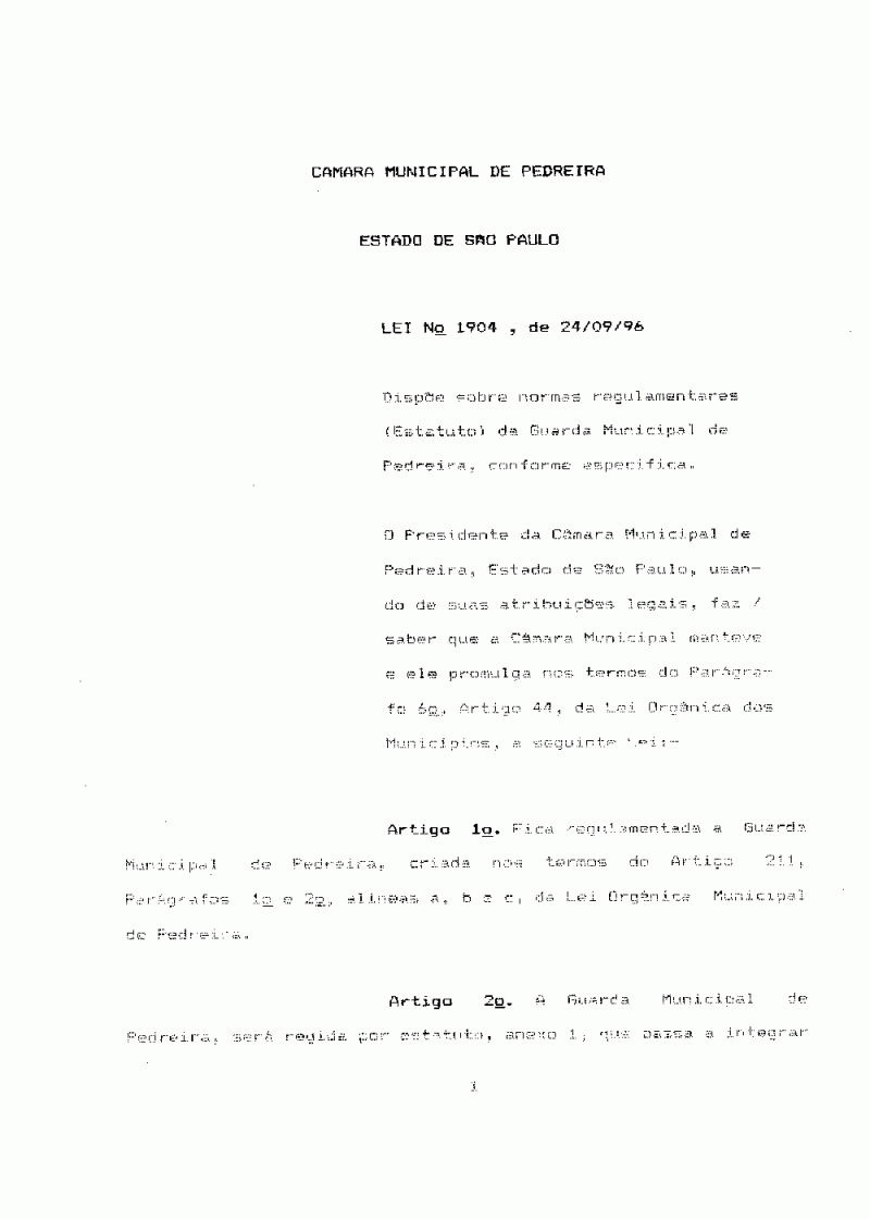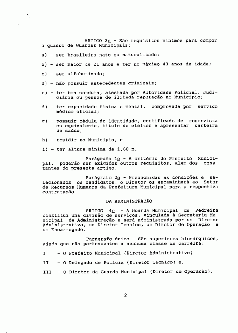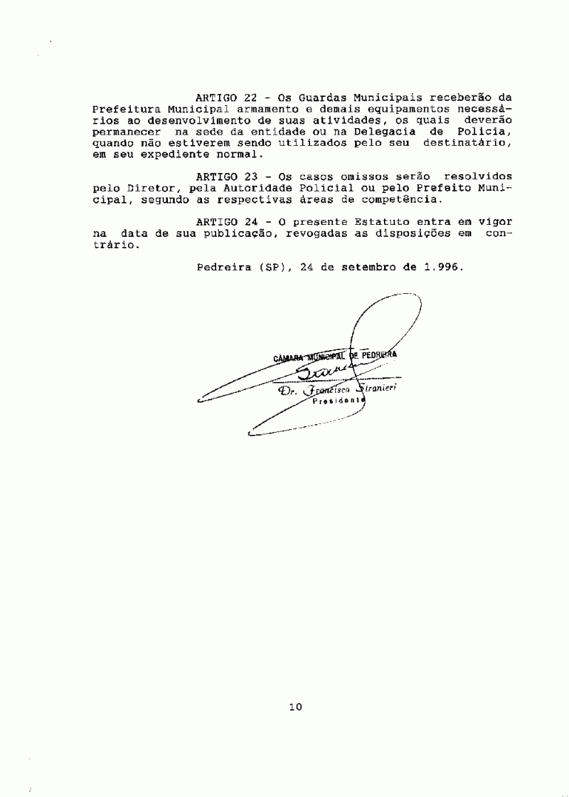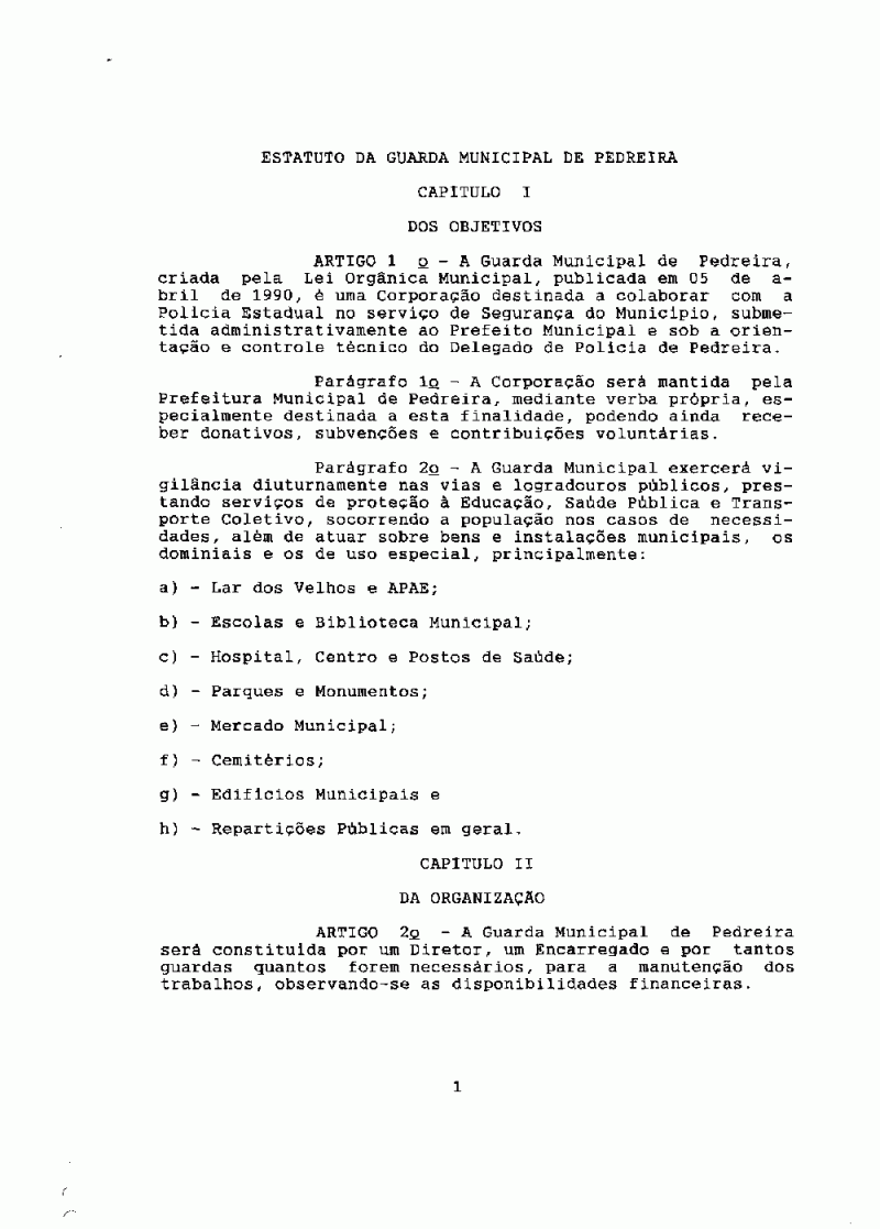Ementa: Dispõe sobre normas regulamentares (Estatuto) da Guarda Municipal de Pedreira, conforme especifica.