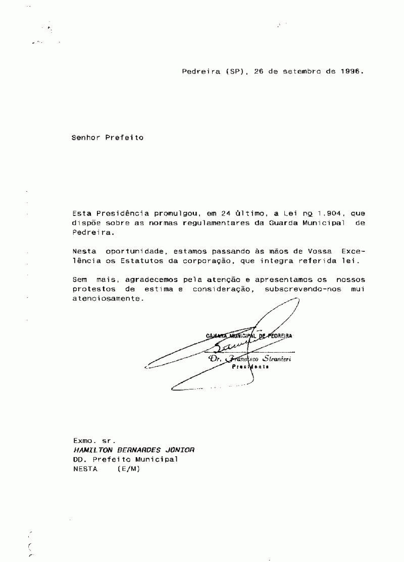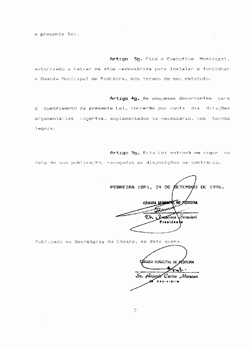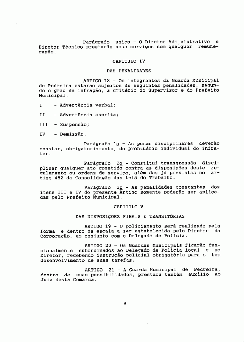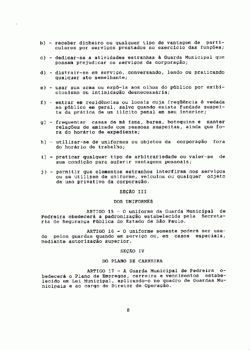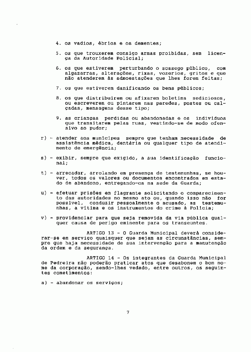 Ementa: Dispõe sobre normas regulamentares (Estatuto) da Guarda Municipal de Pedreira, conforme especifica.