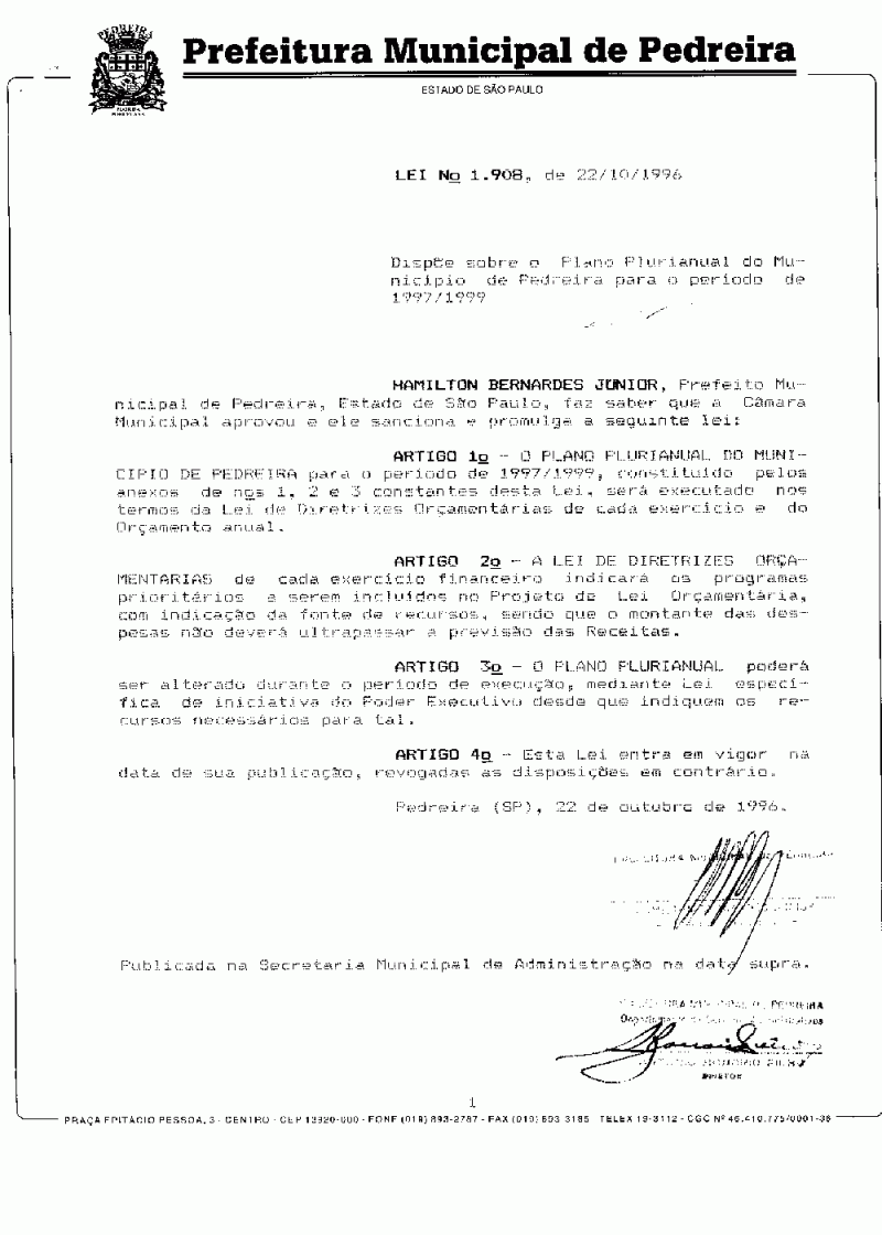Lei Municipal - N° 1908 de 22/10/1996