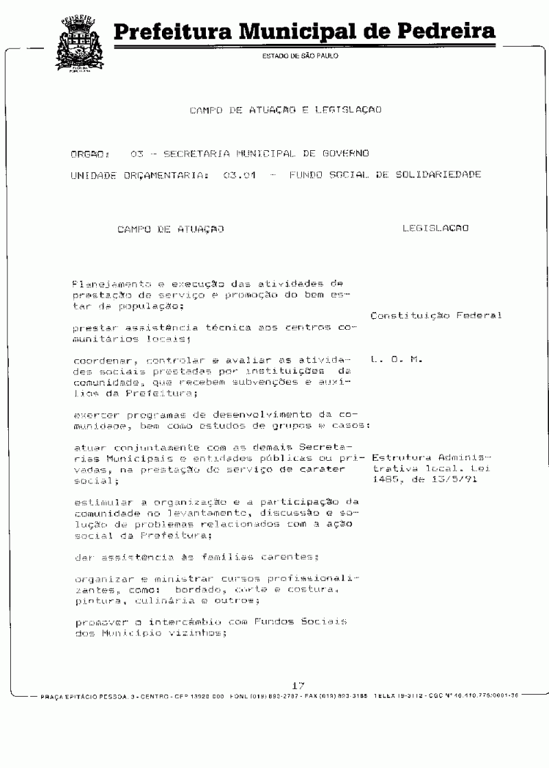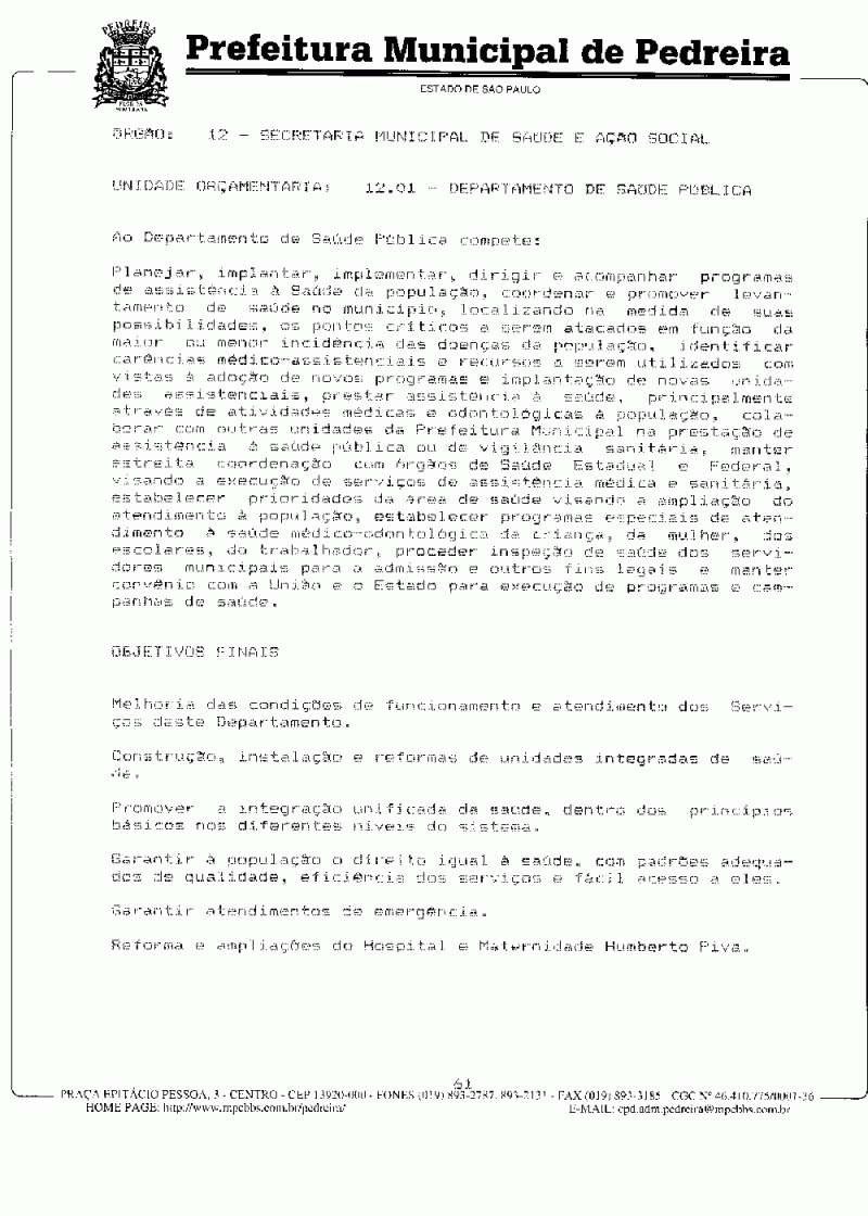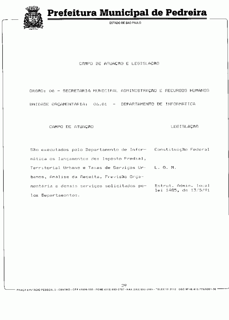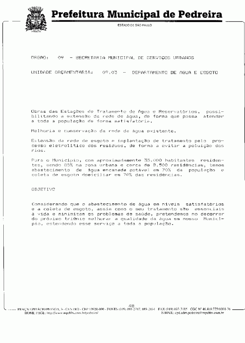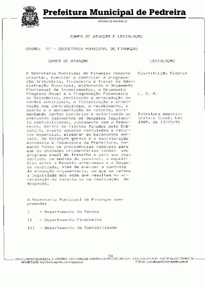 Ementa: Dispõe sobre o Plano Plurianual do Município de Pedreira para o período de 1997/1999.