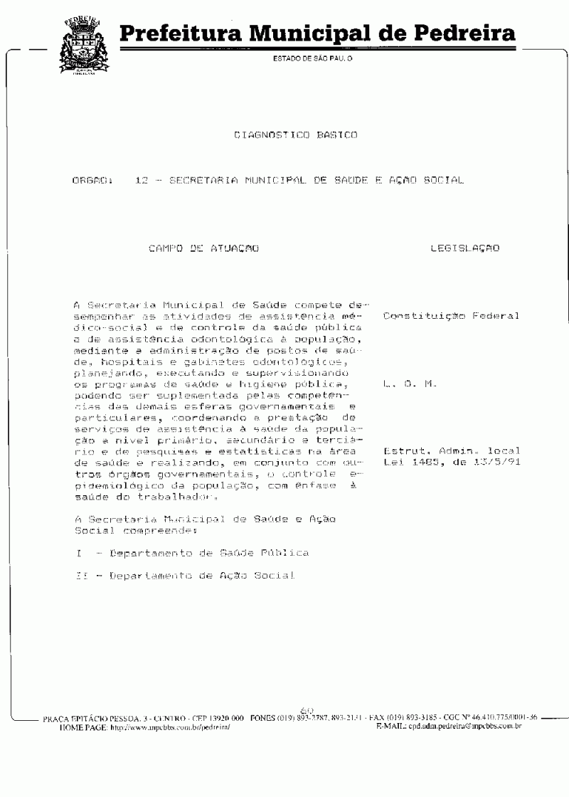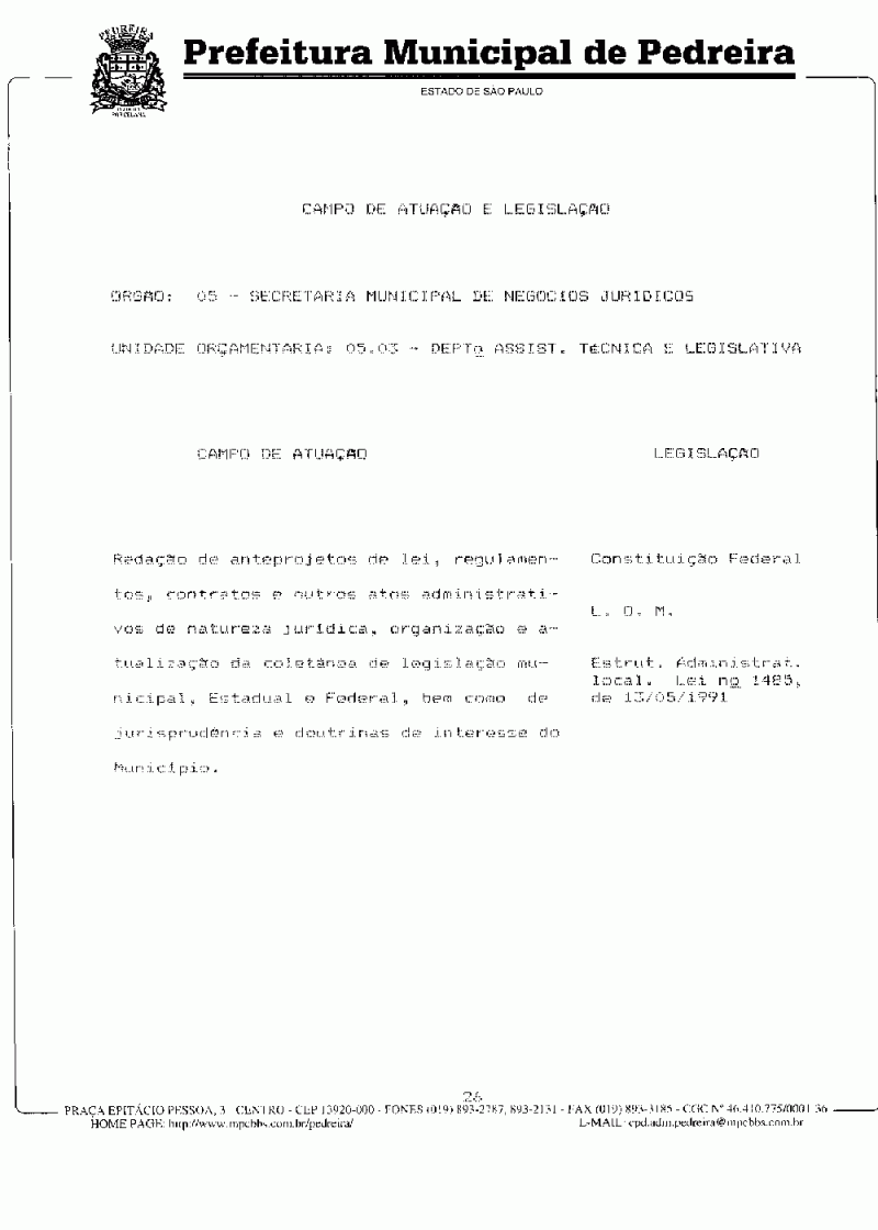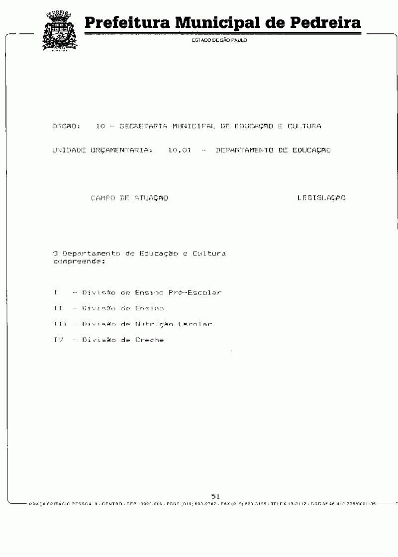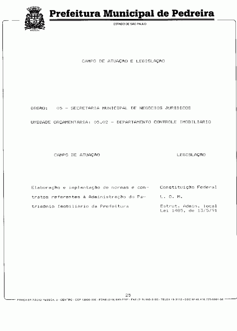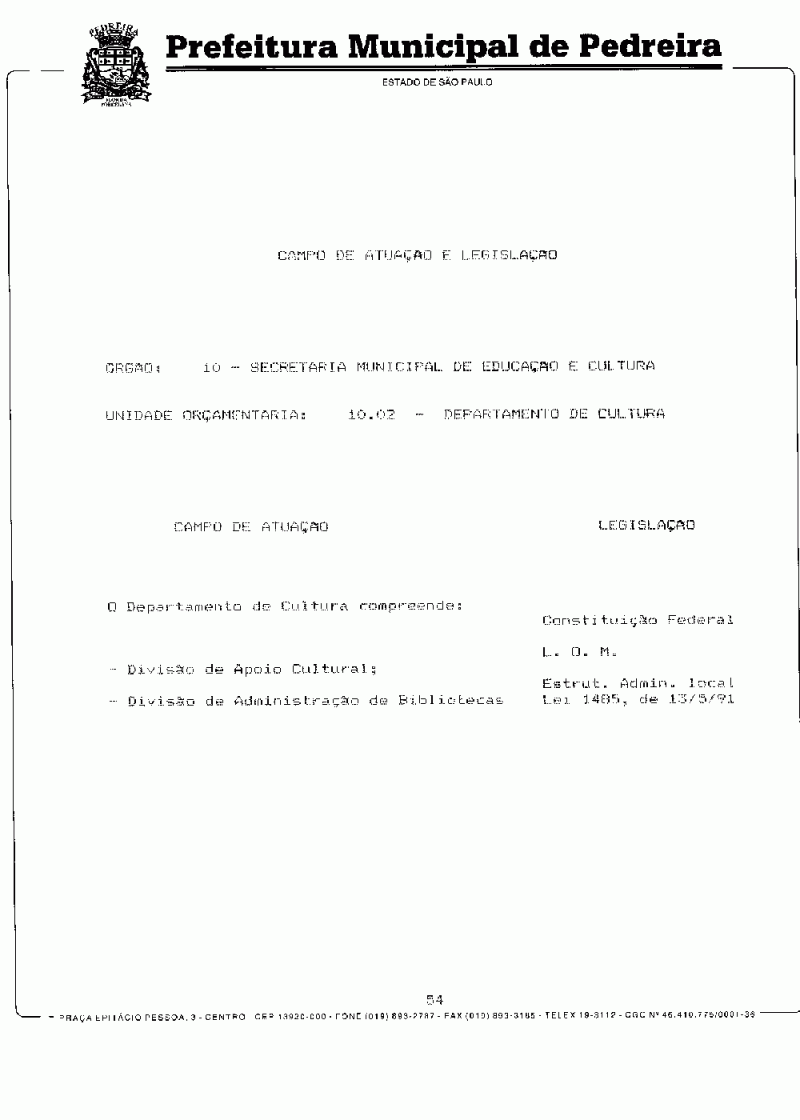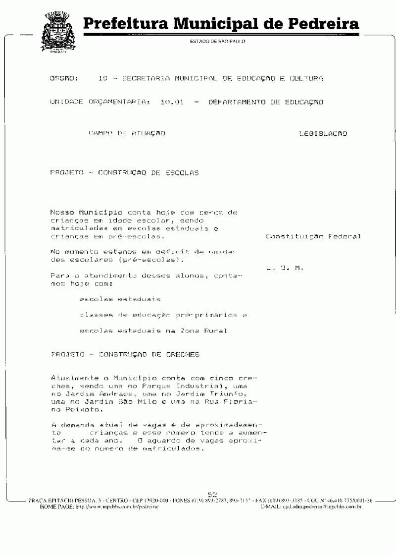 Ementa: Dispõe sobre o Plano Plurianual do Município de Pedreira para o período de 1997/1999.