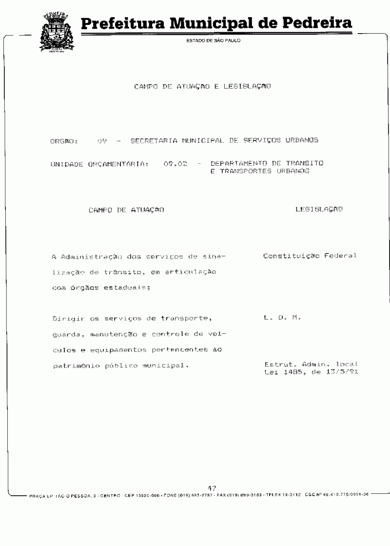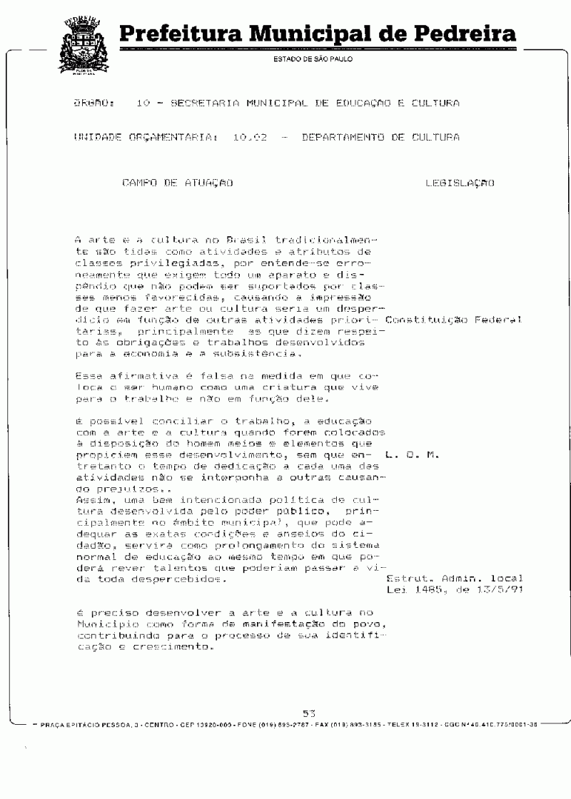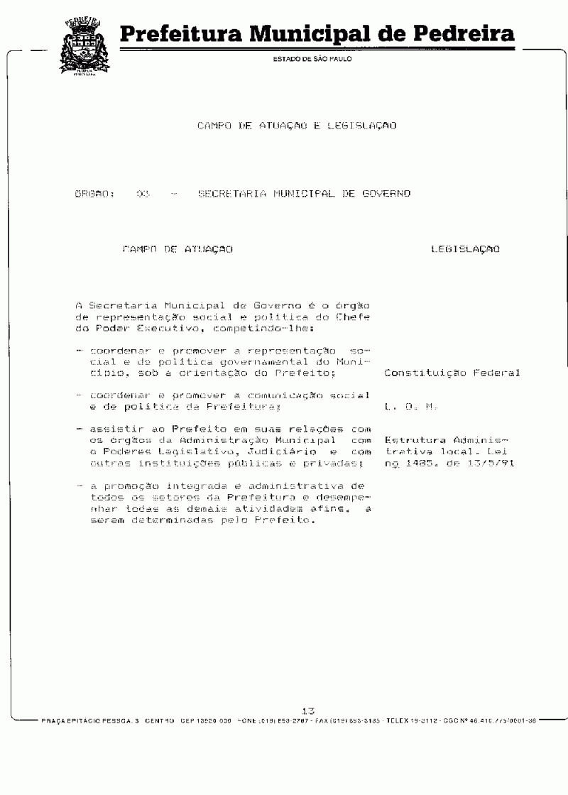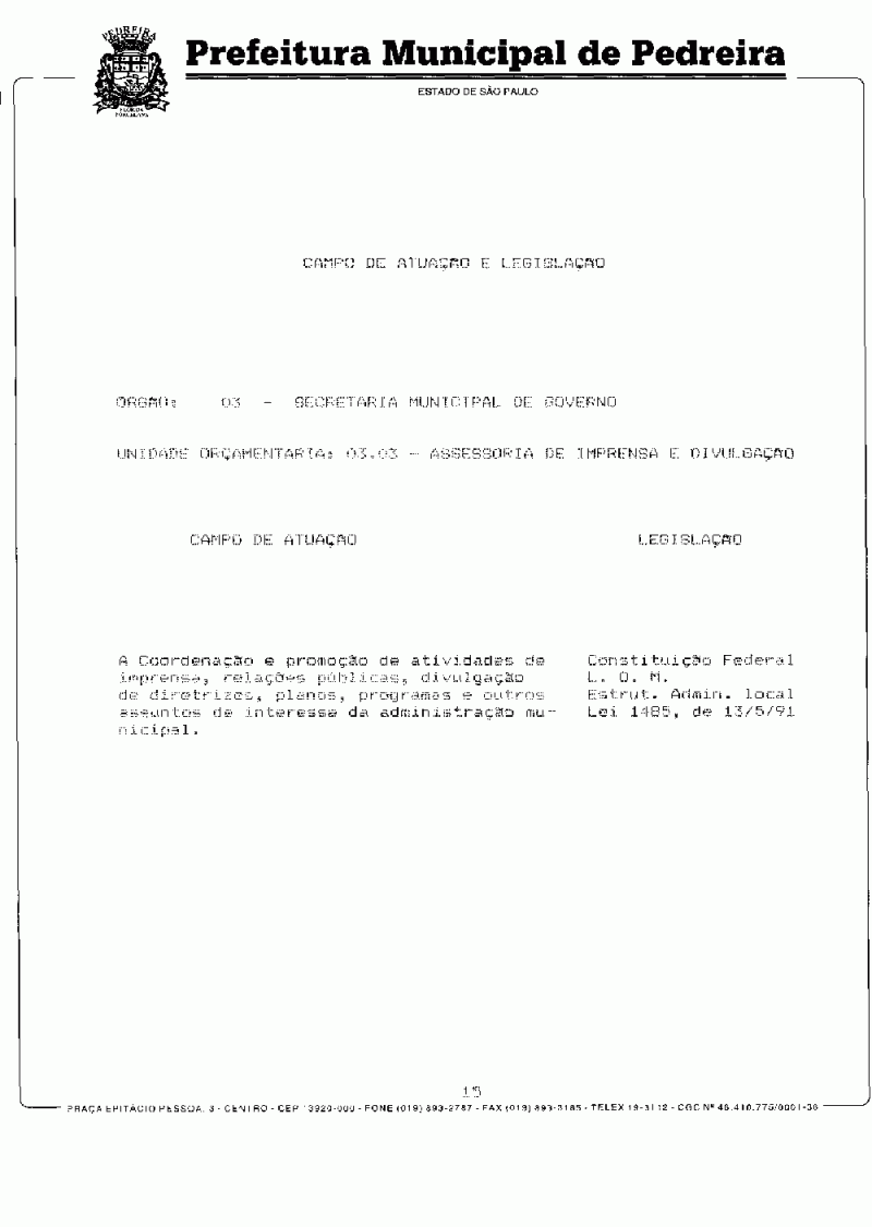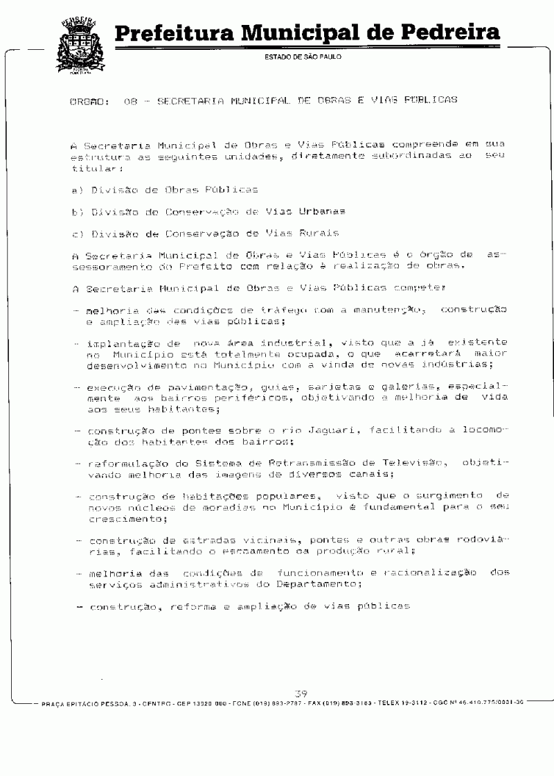 Ementa: Dispõe sobre o Plano Plurianual do Município de Pedreira para o período de 1997/1999.