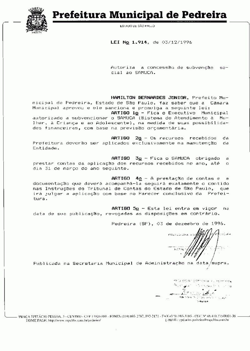 Ementa: Autoriza a concessão de subvenção social ao SAMUCA.