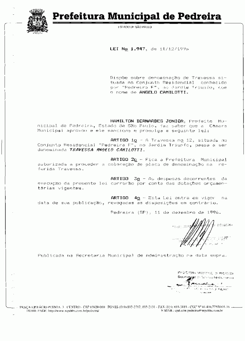 Lei Municipal - N° 1947 de 11/12/1996