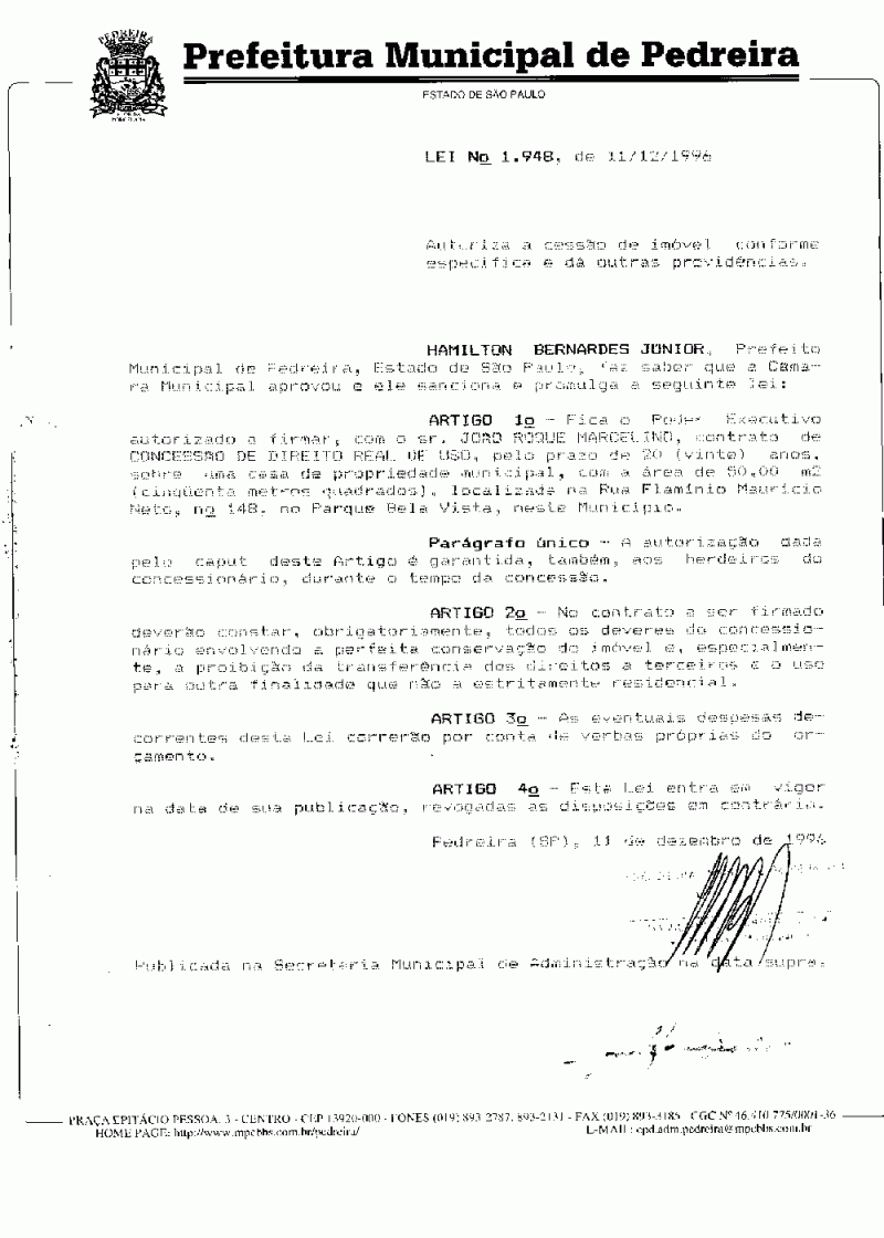 Ementa: Autoriza a cessão de imóvel conforme especifica e dá outras providências.