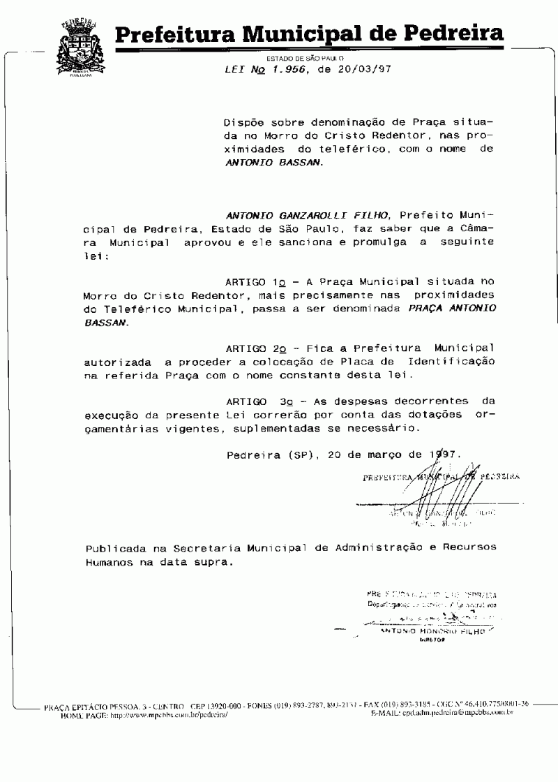 Lei Municipal - N° 1956 de 20/03/1997