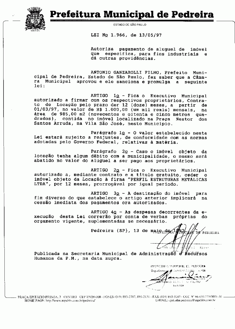 Lei Municipal - N° 1966 de 13/05/1997