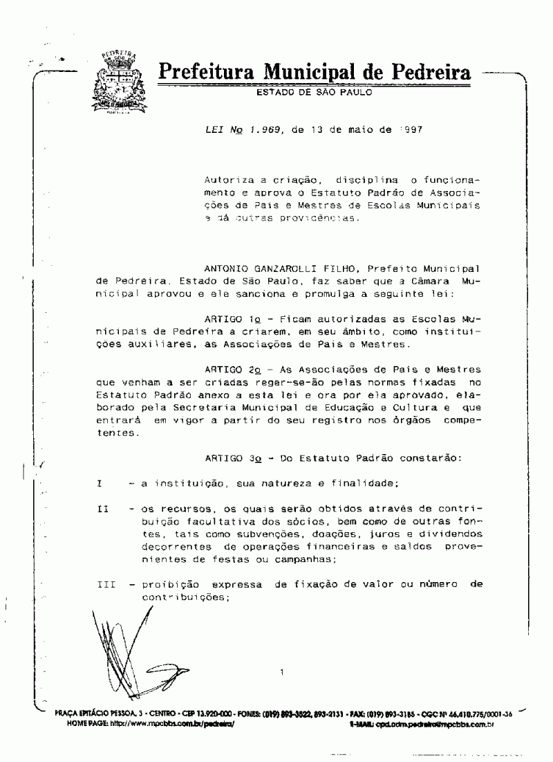 Lei Municipal - N° 1969 de 13/05/1997
