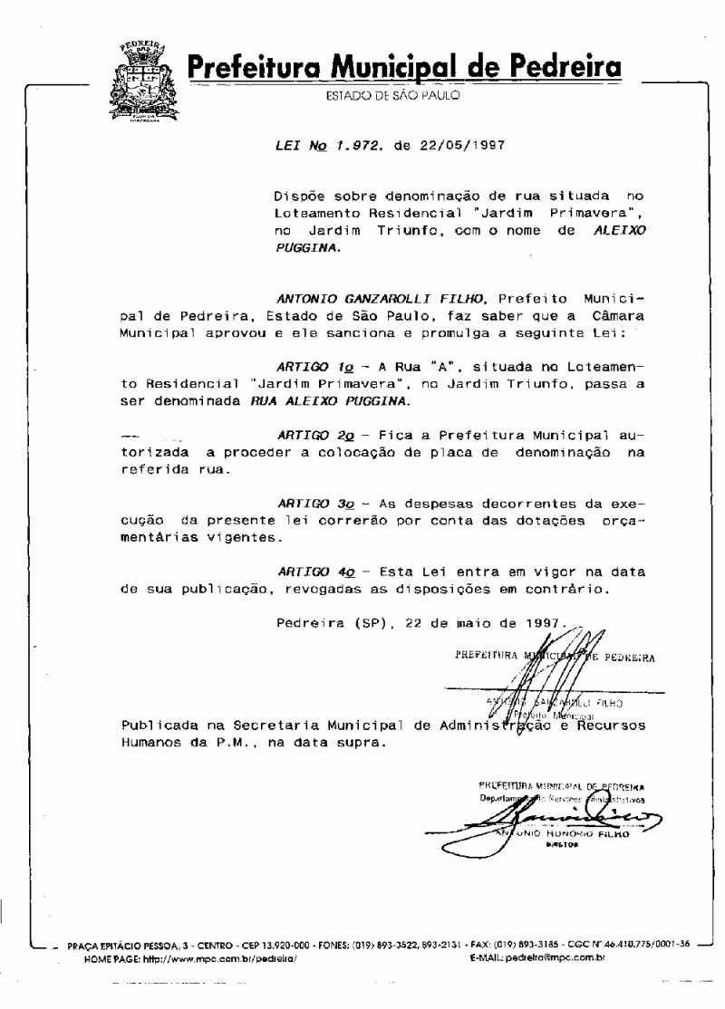 Lei Municipal - N° 1972 de 22/05/1997