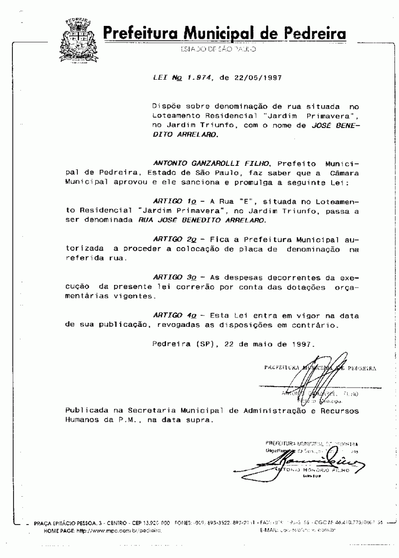 Lei Municipal - N° 1974 de 22/05/1997