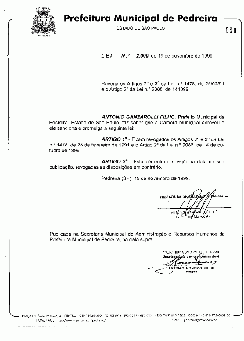 Lei Municipal - N° 2090 de 19/11/1999