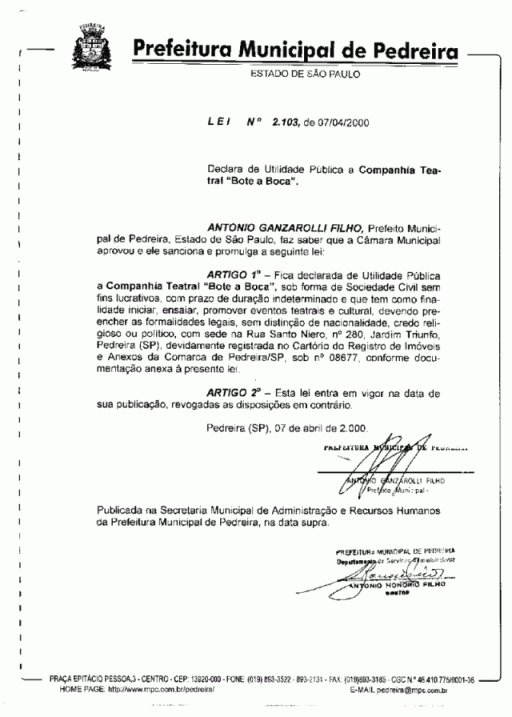Ementa: Declara de utilidade pública a Companhia Teatral "Bote a Boca".