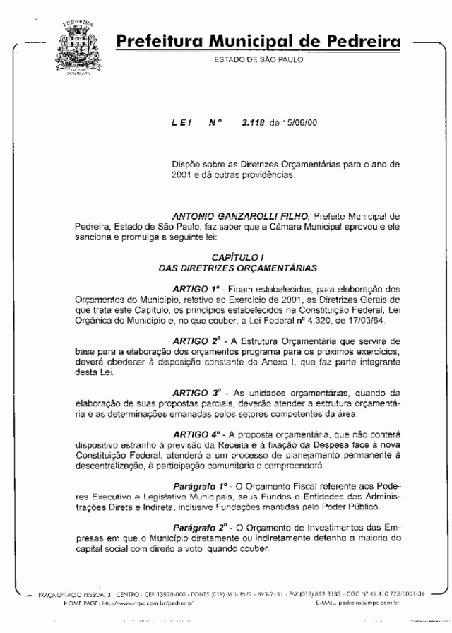 Ementa: Dispõe sobre as Diretrizes Orçamentárias para o ano de 2001 e dá outras providências.
