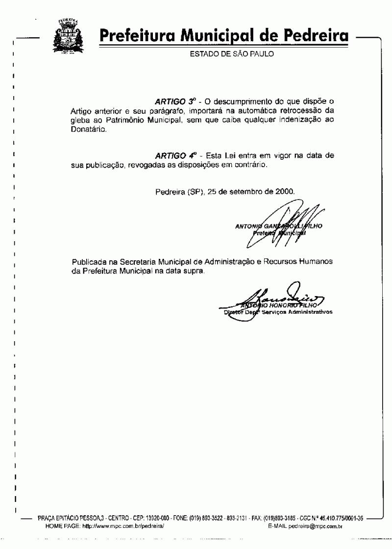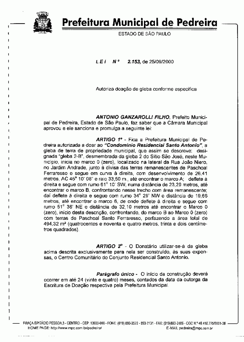Lei Municipal - N° 2153 de 25/09/2000