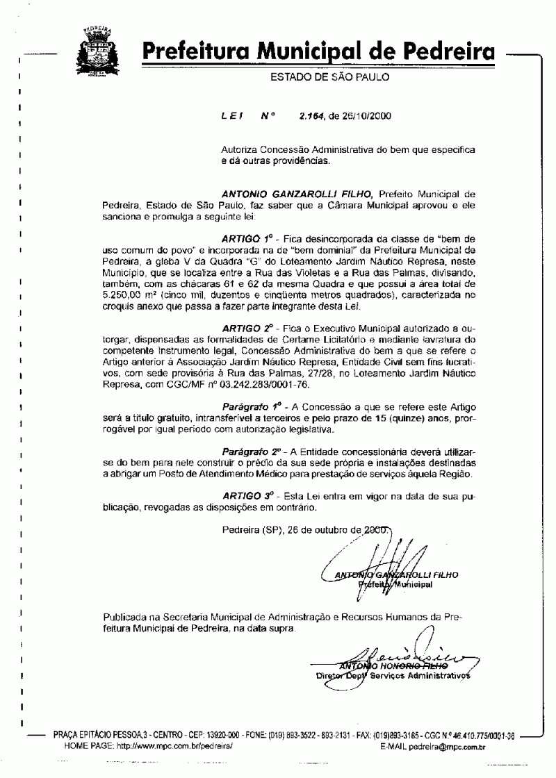 Ementa: Autoriza concessão administrativa do bem que especifica e dá outras providências.