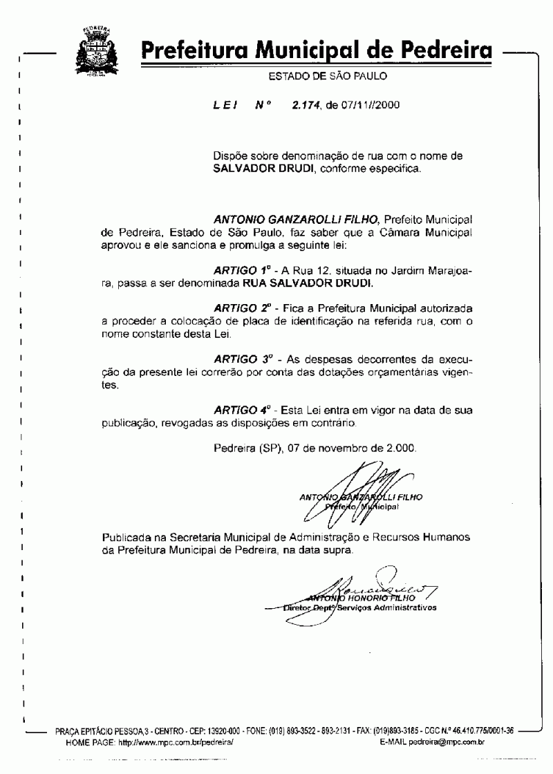 Lei Municipal - N° 2174 de 07/11/2000
