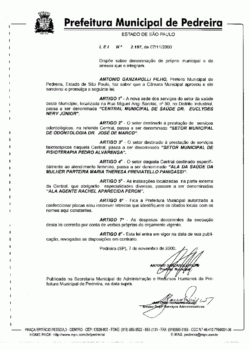Lei Municipal - N° 2187 de 07/11/2000