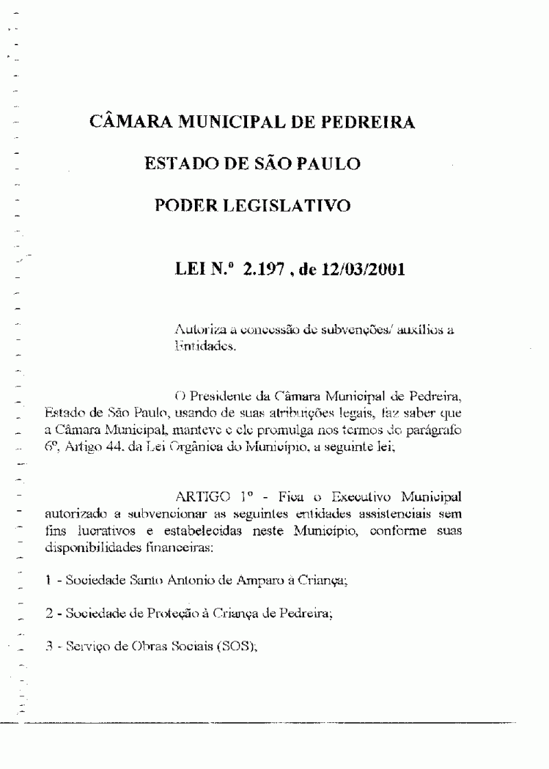 Lei Municipal - N° 2197 de 12/03/2001