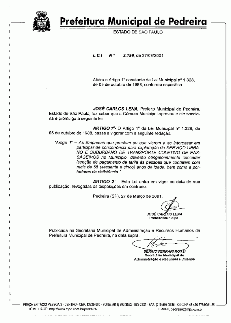 Ementa: Altera o artigo 1º constante da Lei Municipal nº 1238, de 05 de outubro de 1988, conforme especifica.