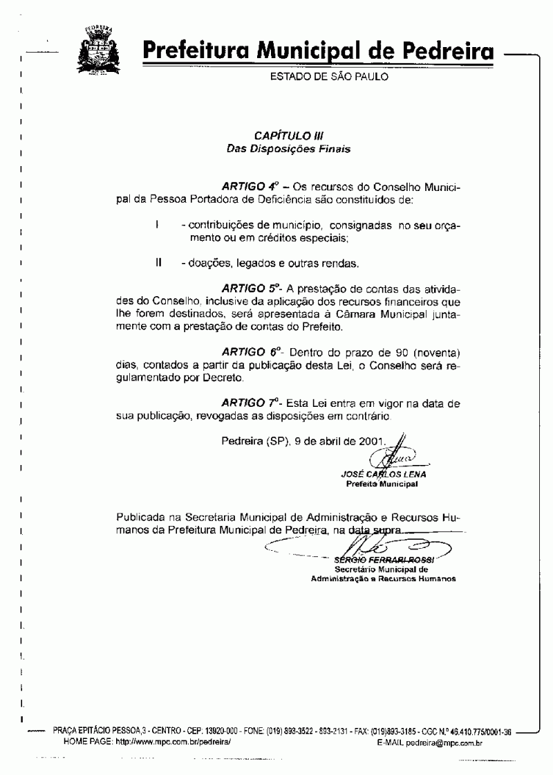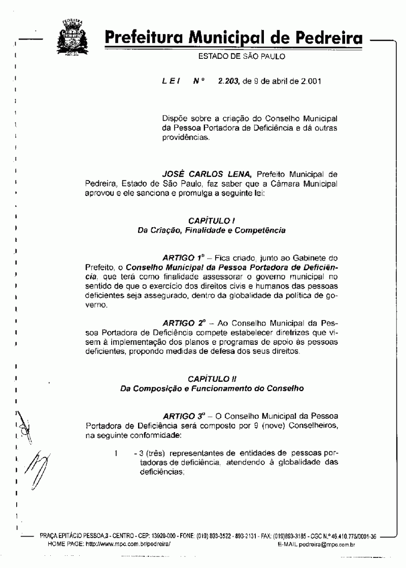 Lei Municipal - N° 2203 de 09/04/2001