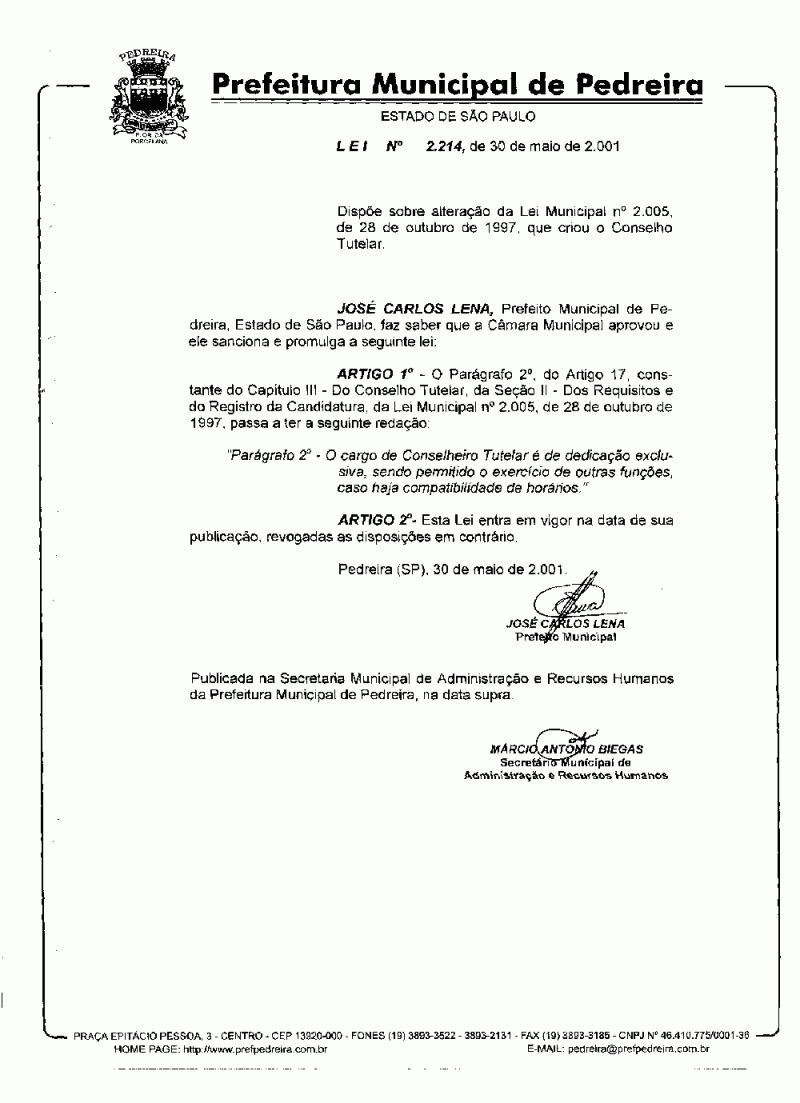 Lei Municipal - N° 2214 de 30/05/2001