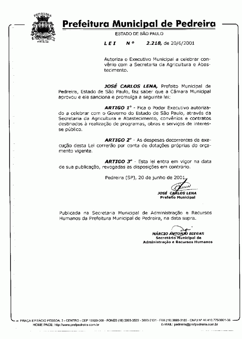 Ementa: Autoriza o Executivo Municipal a celebrar convênio com a Secretaria da Agricultura e Abastecimento.