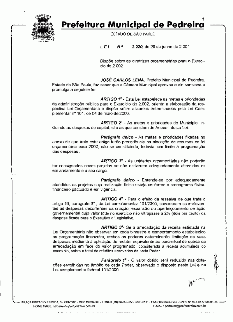 Ementa: Dispõe sobre as diretrizes orçamentárias para o exercício de 2002.