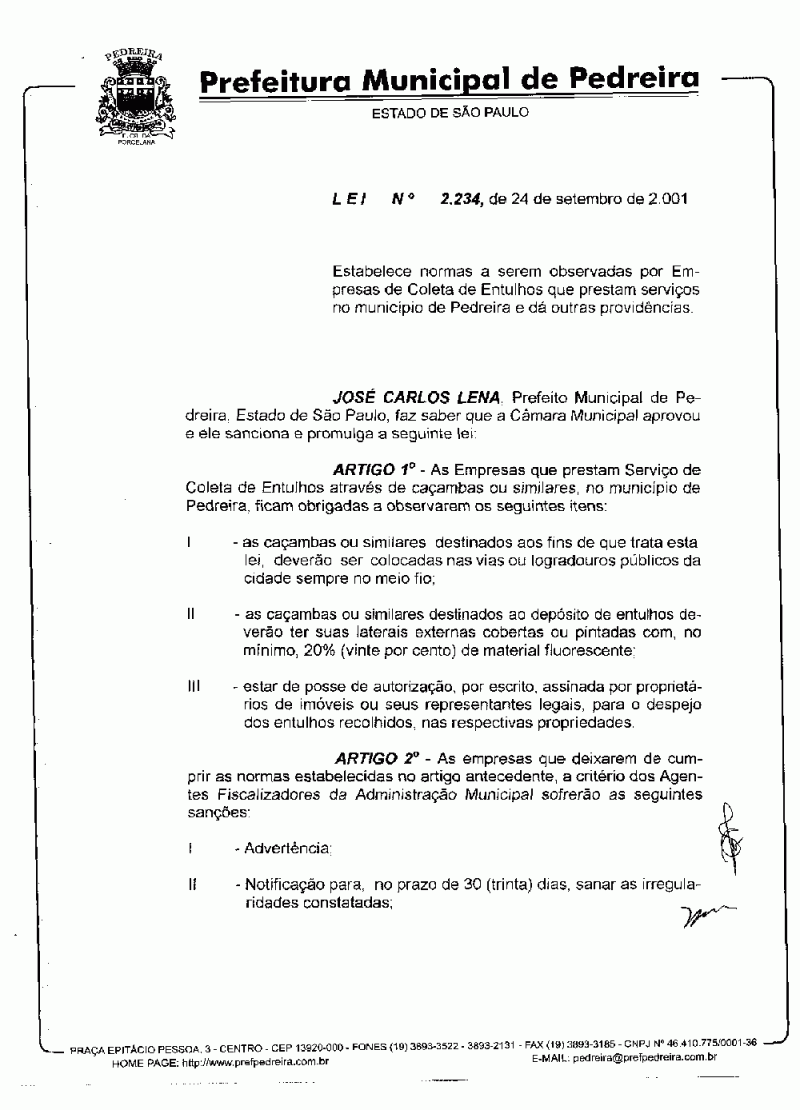 Lei Municipal - N° 2234 de 24/09/2001