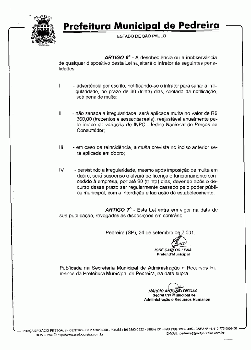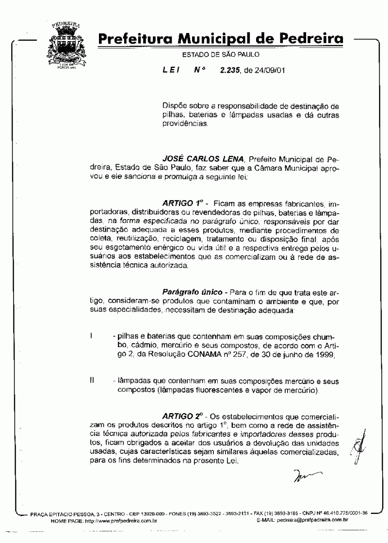 Lei Municipal - N° 2235 de 24/09/2001