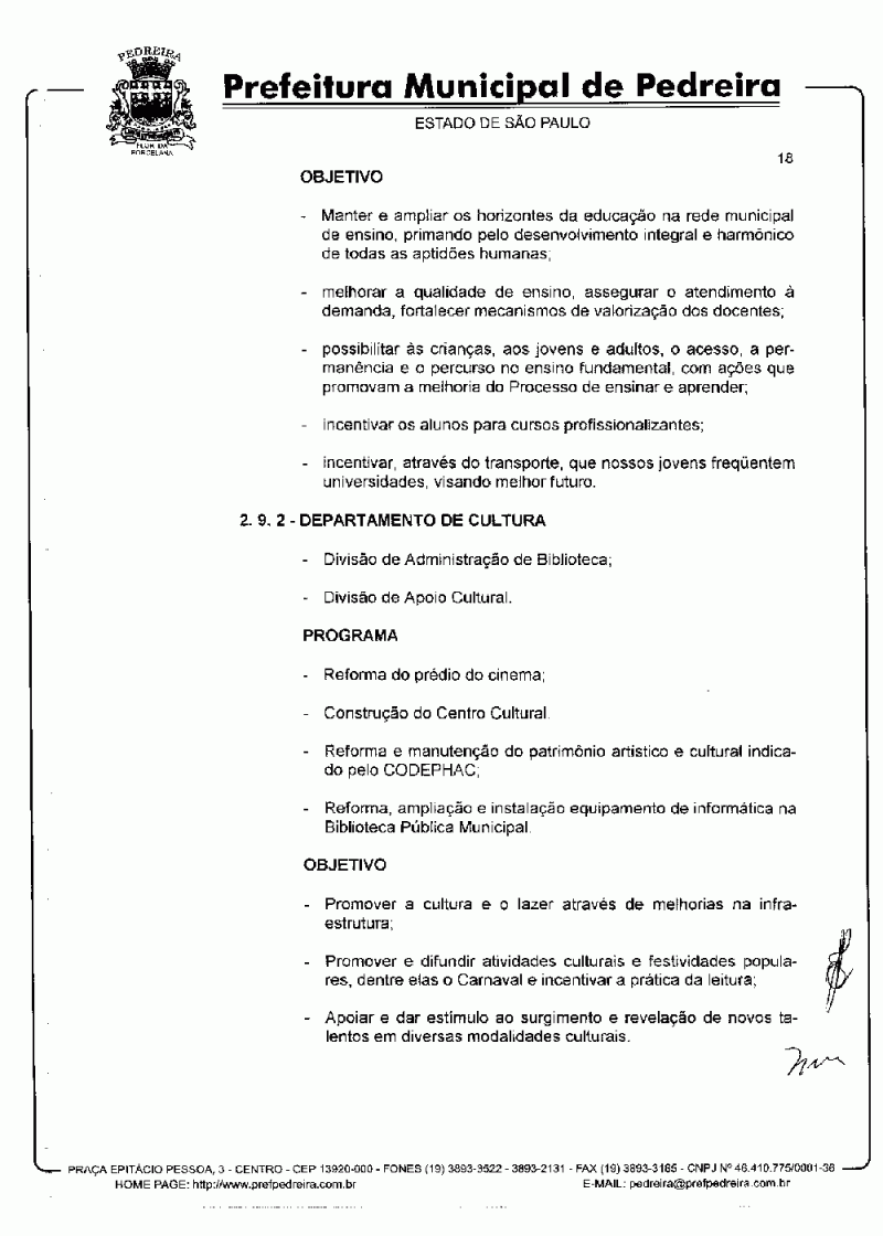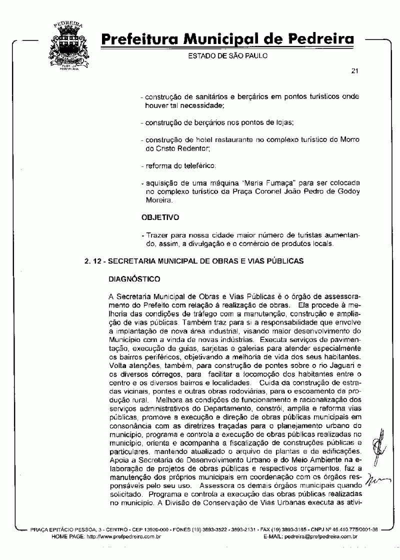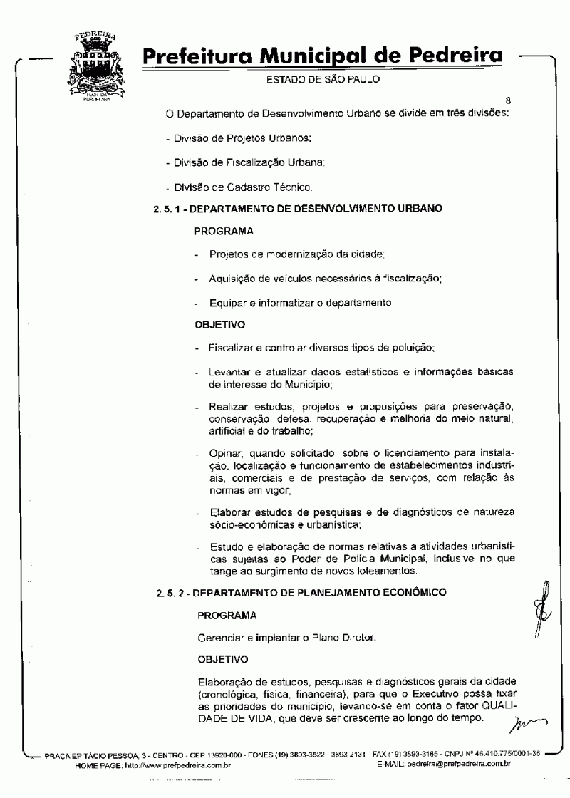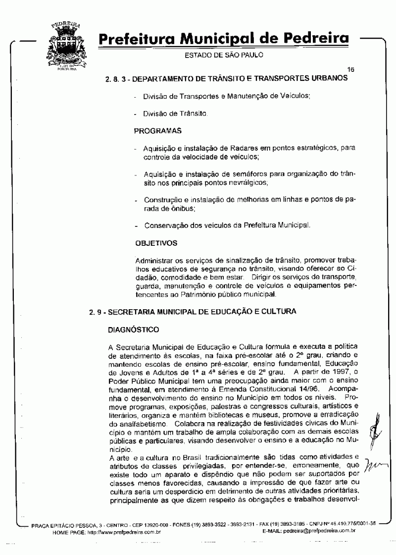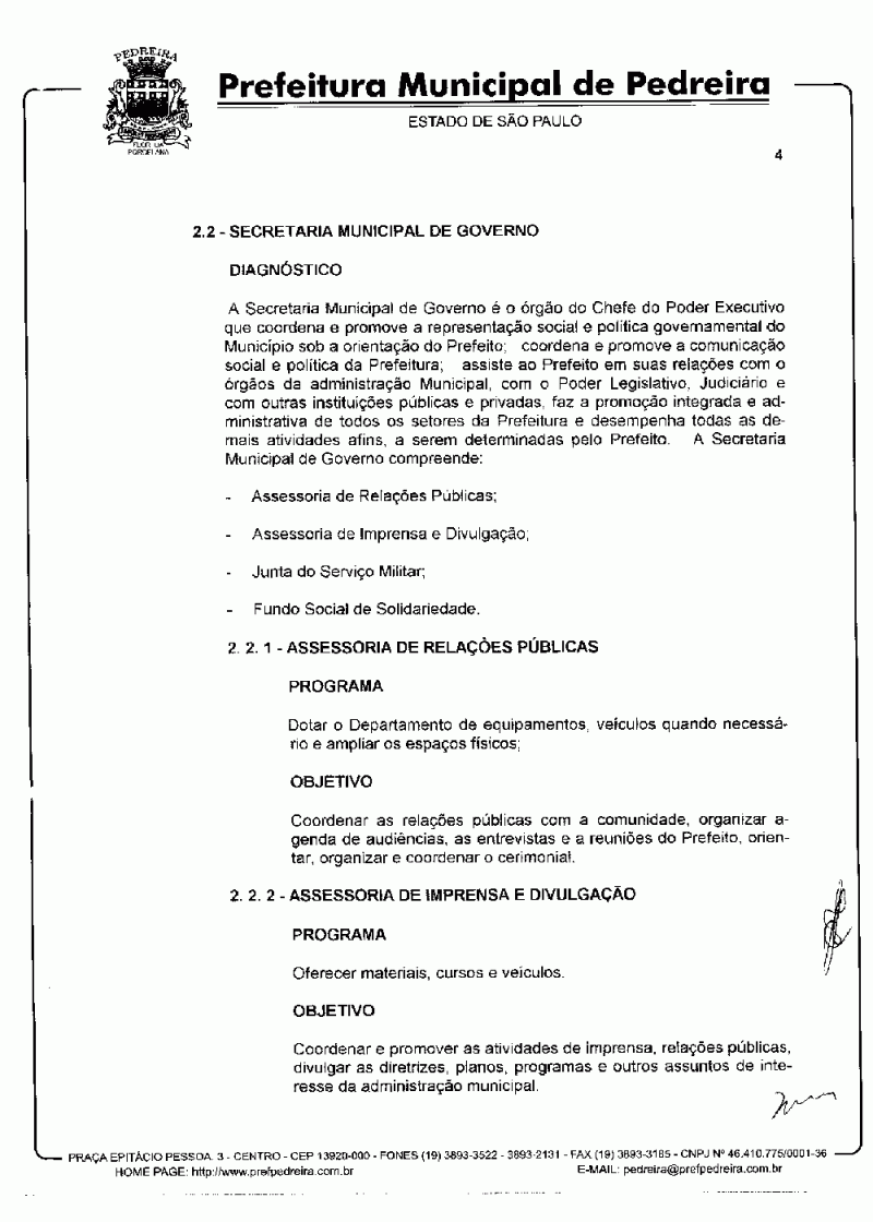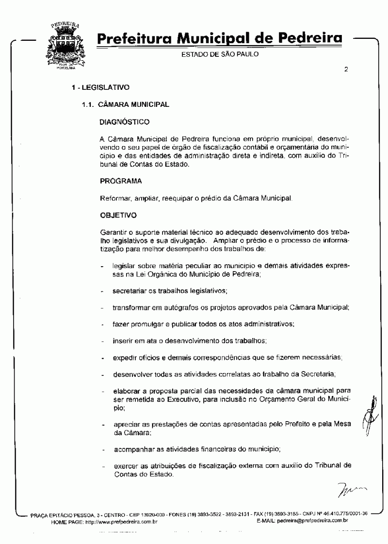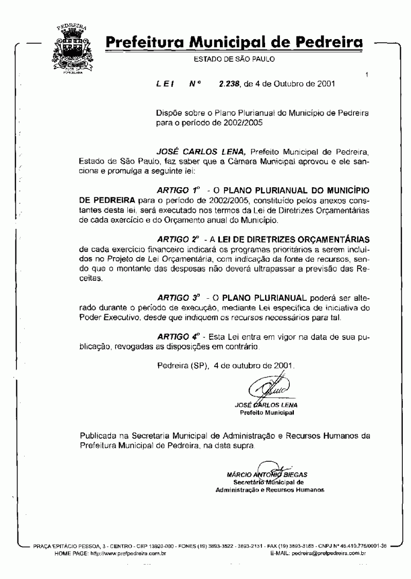 Ementa: Dispõe sobre o Plano Plurianual do Município de Pedreira para o Período de 2002/2005.
