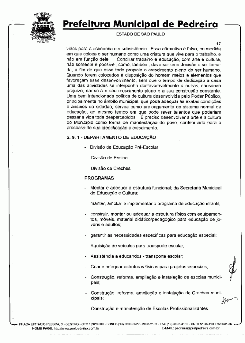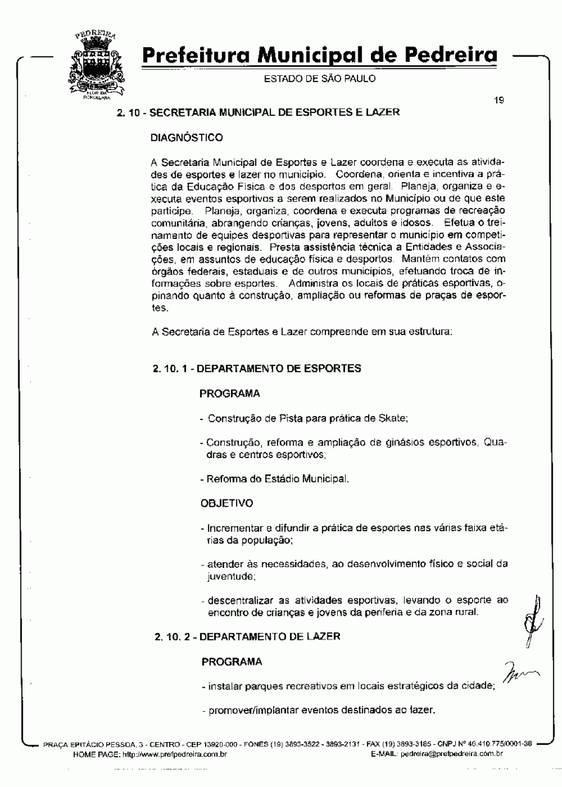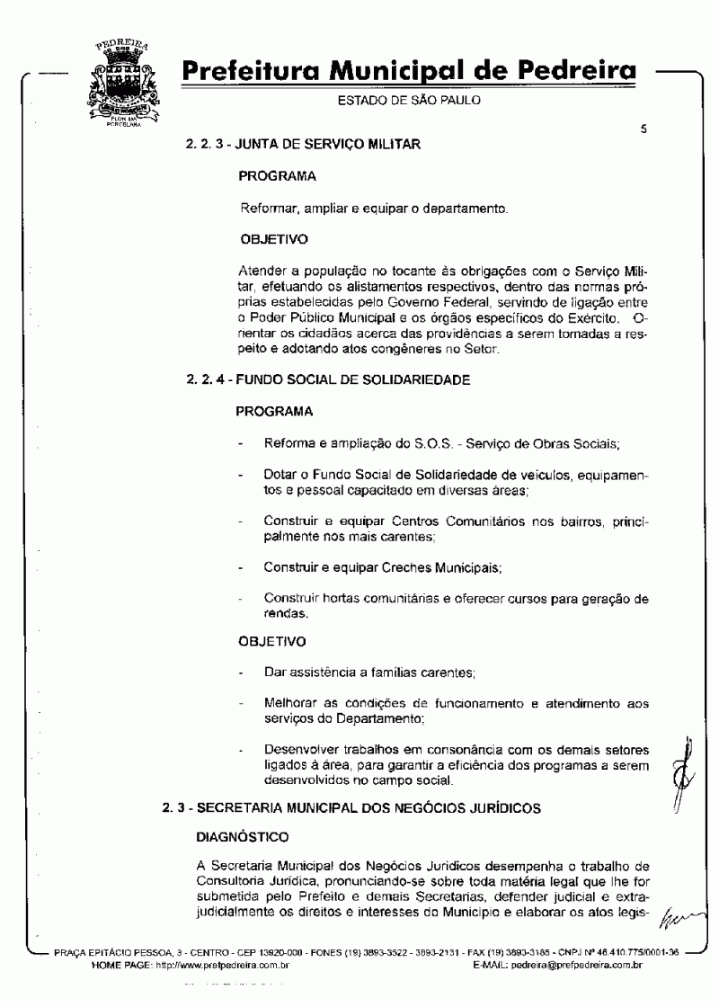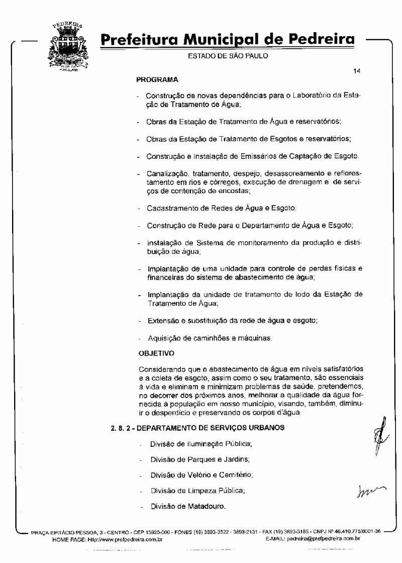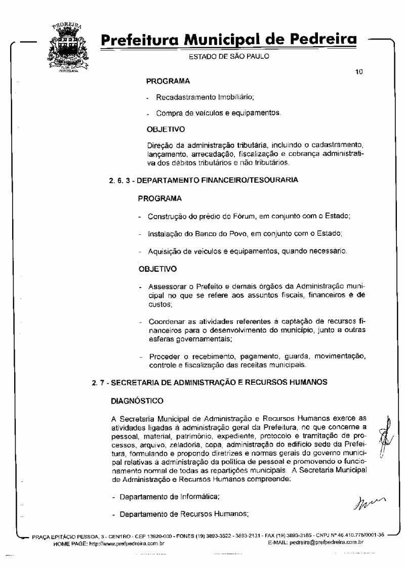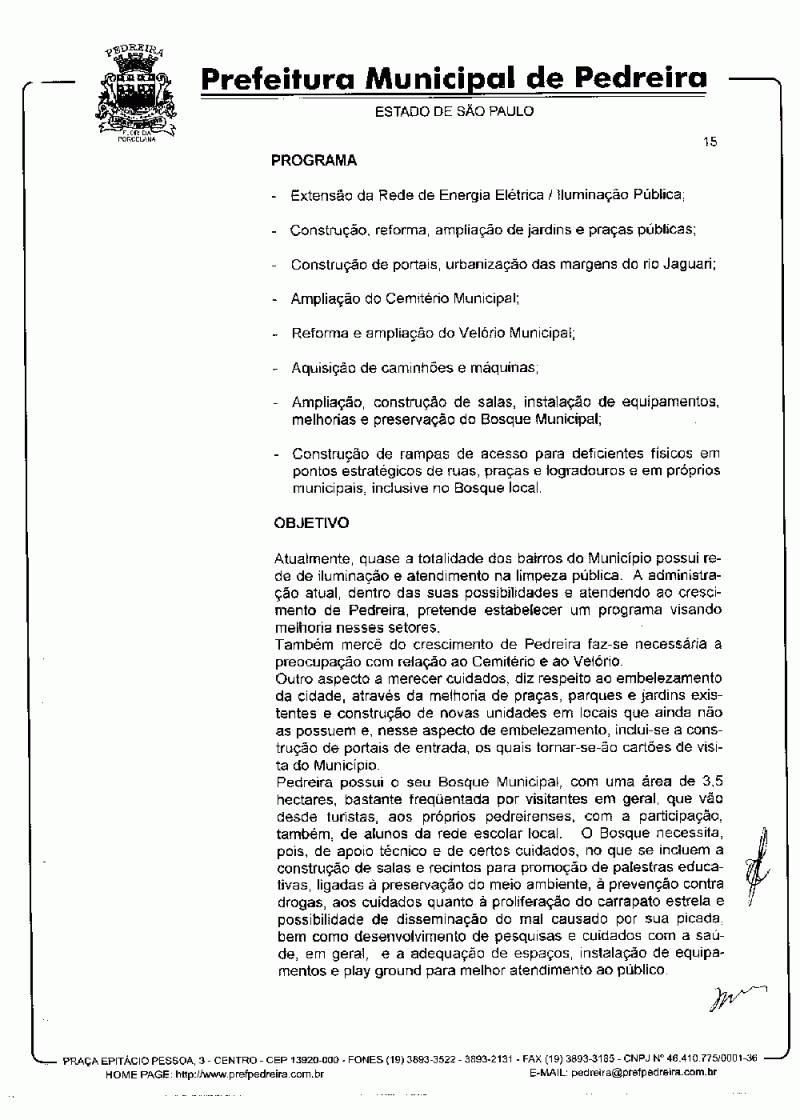 Ementa: Dispõe sobre o Plano Plurianual do Município de Pedreira para o Período de 2002/2005.