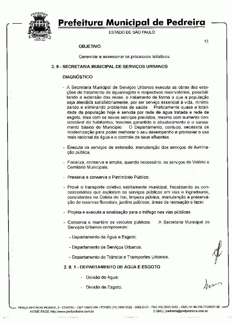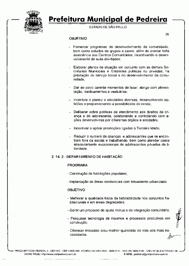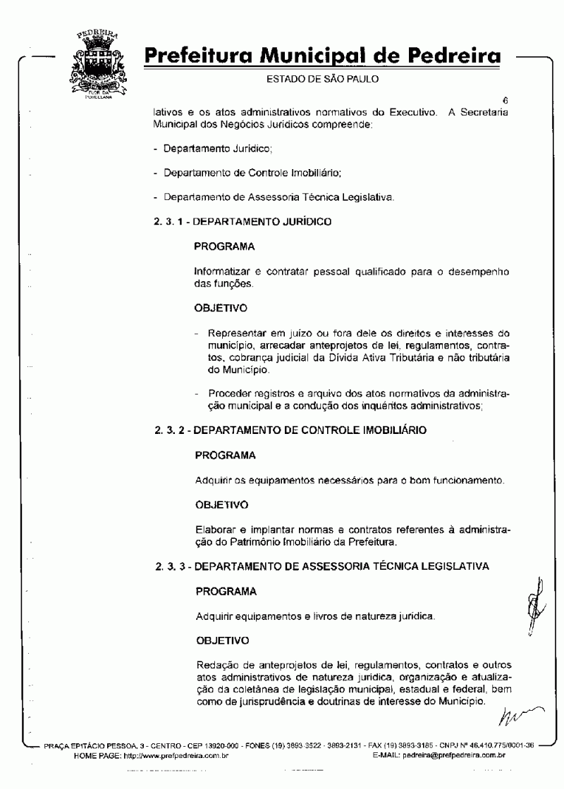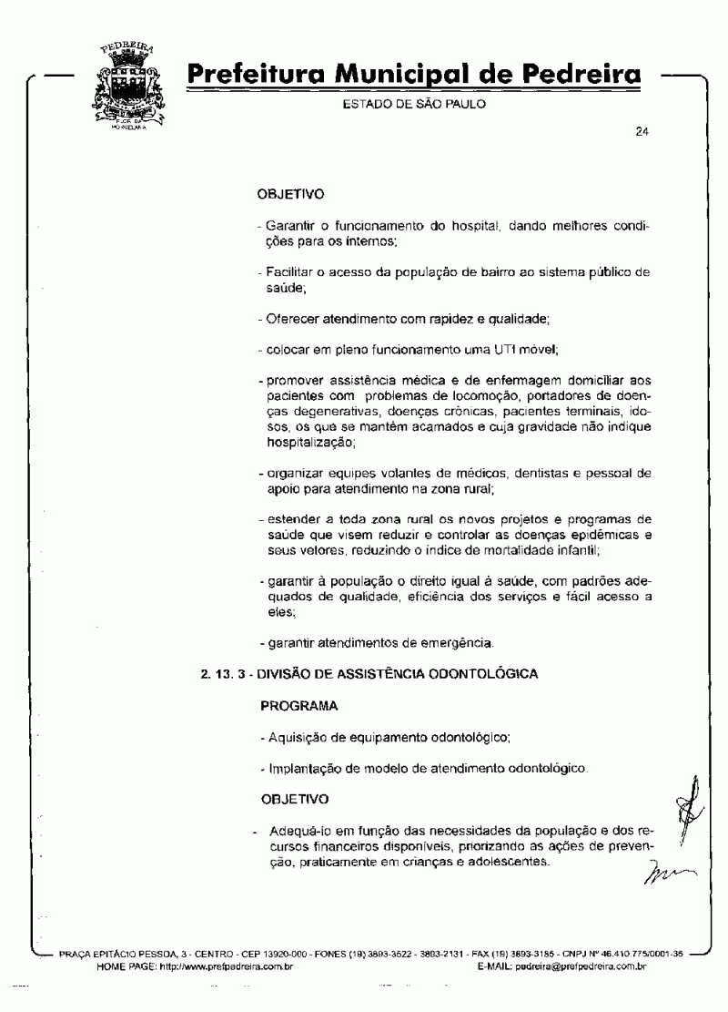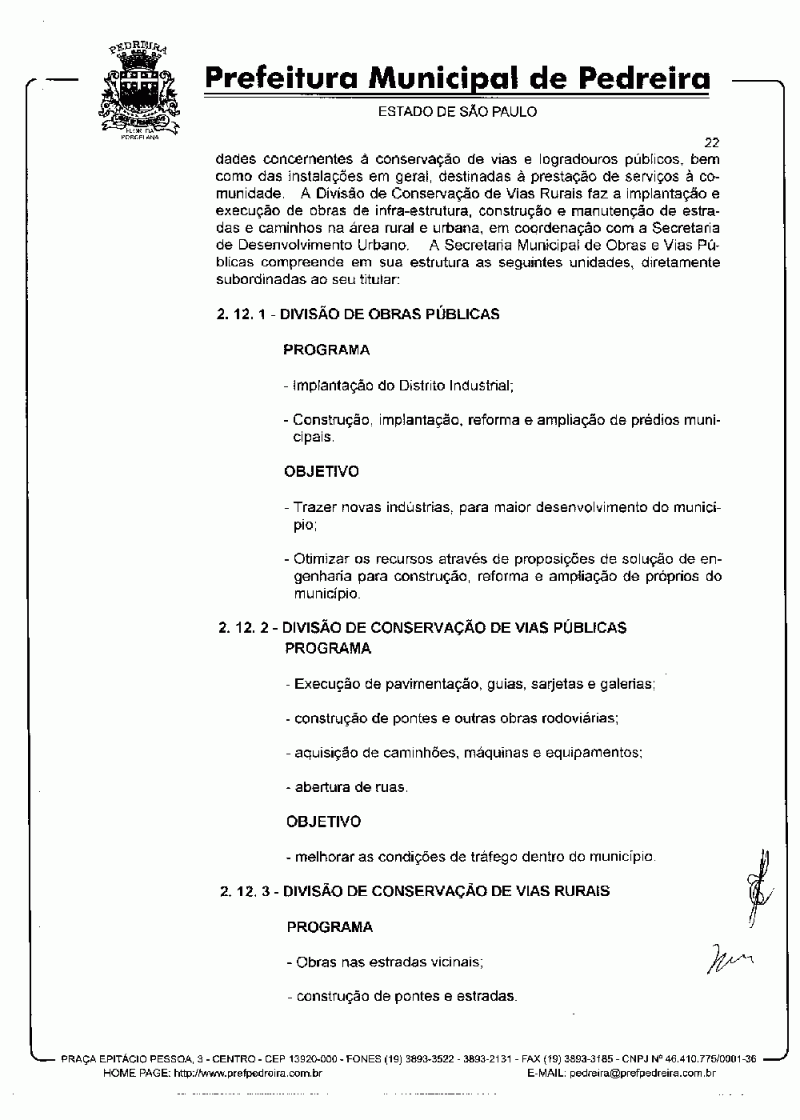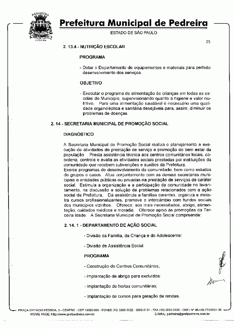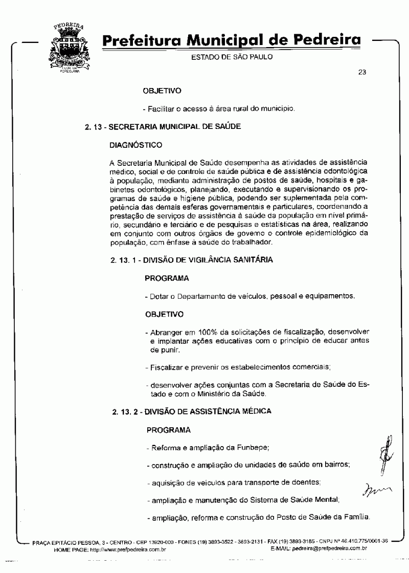 Ementa: Dispõe sobre o Plano Plurianual do Município de Pedreira para o Período de 2002/2005.