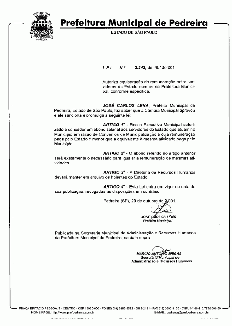 Ementa: Autoriza equiparação de remuneração entre servidores do Estado com os da Prefeitura Municipal, conforme especifica
