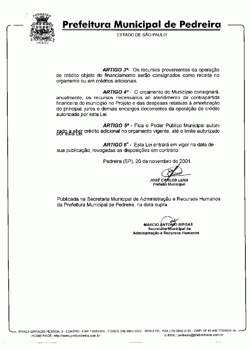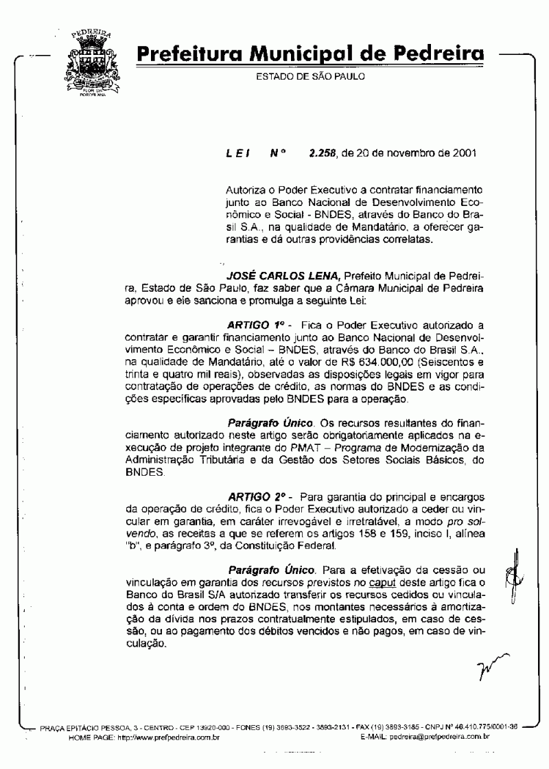 Lei Municipal - N° 2258 de 20/11/2001