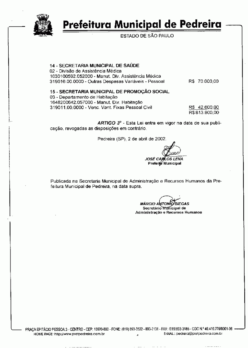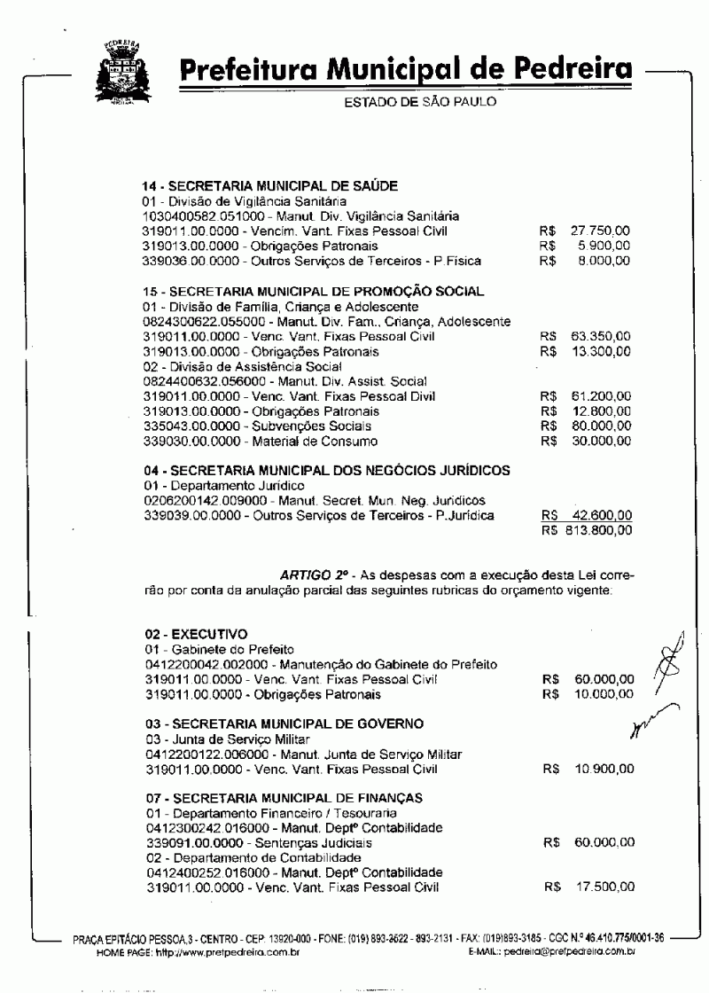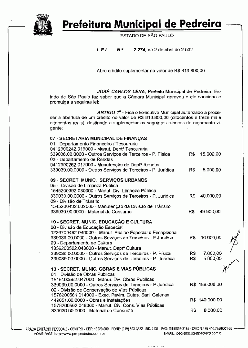 Ementa: Abre crédito suplementar no valor de R$ 813.800,00.