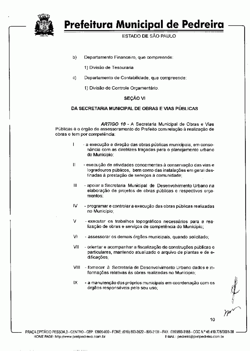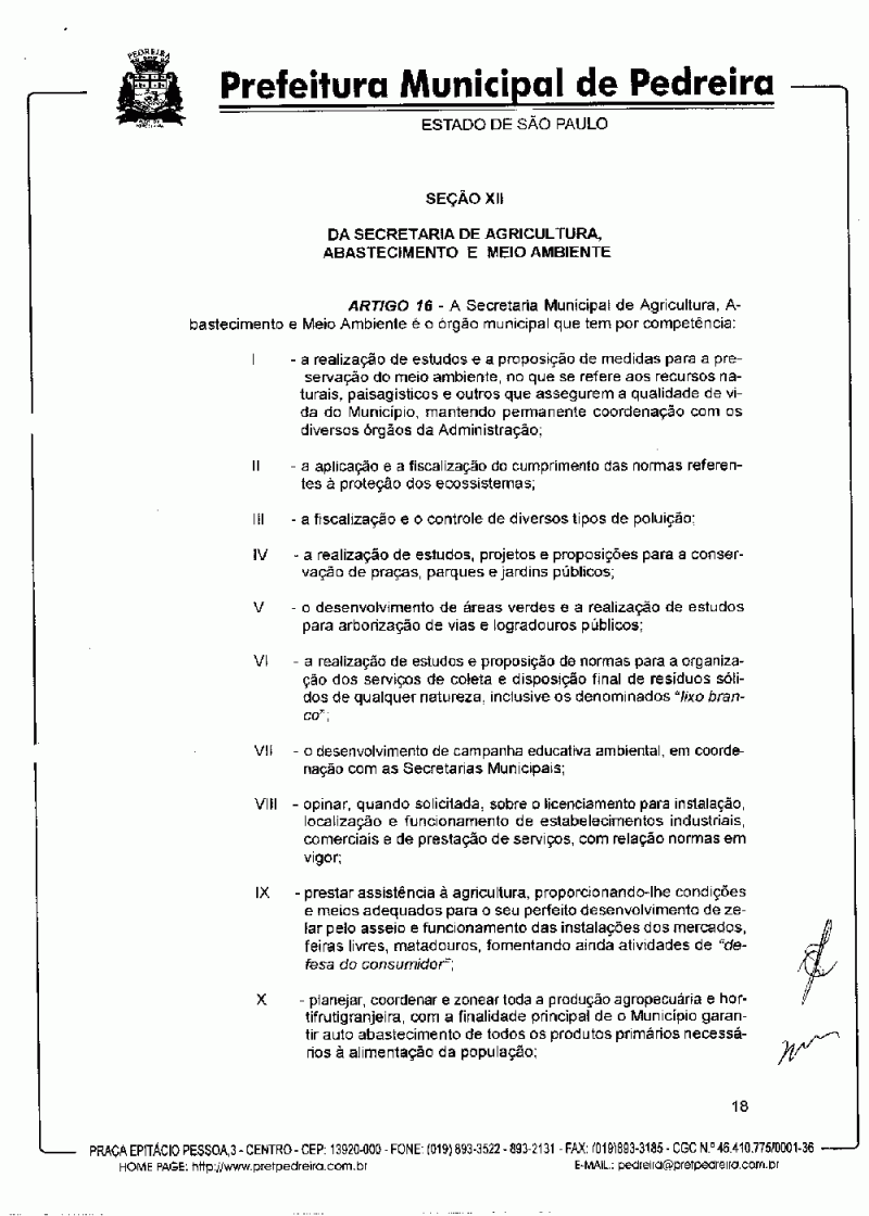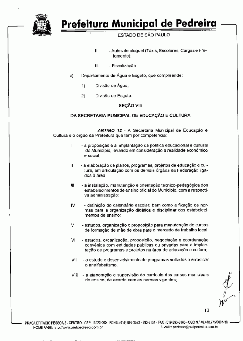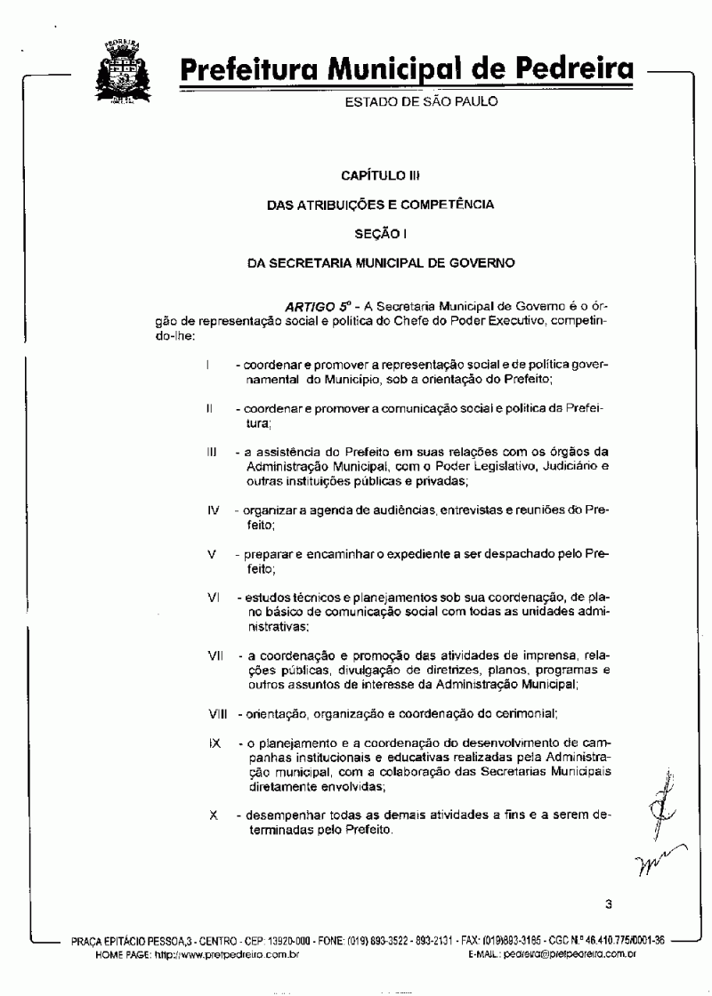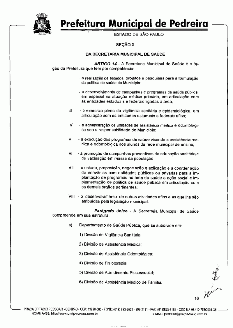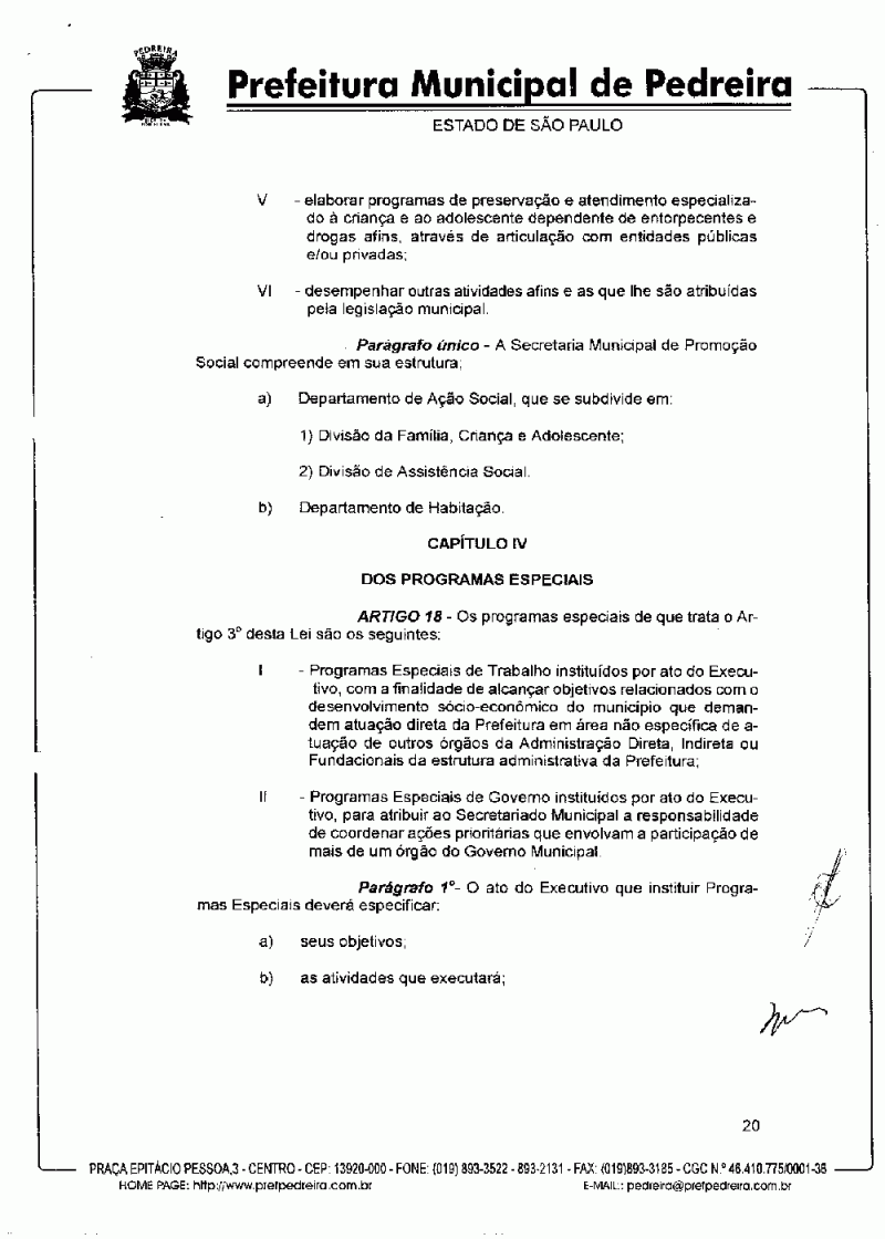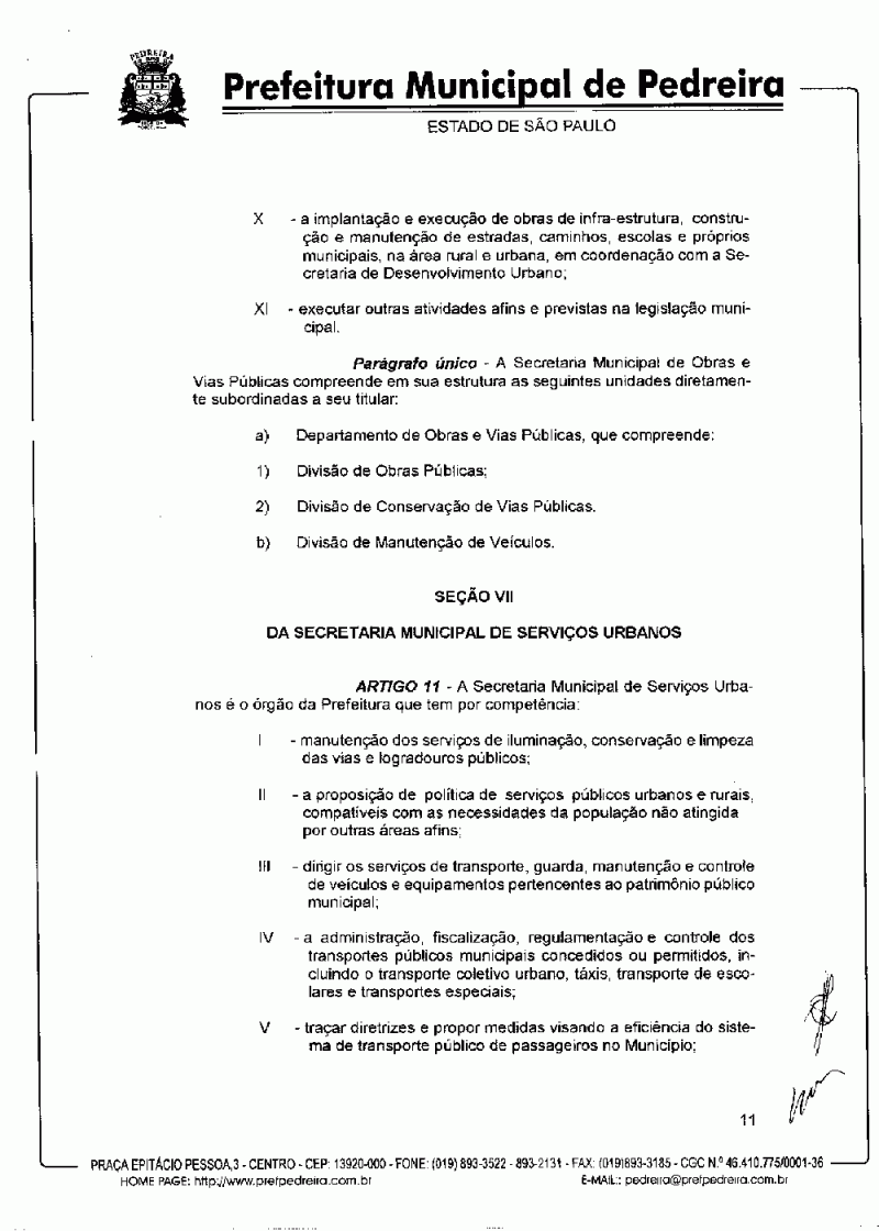 Ementa: Altera a Lei Municipal n° 1.485, de 13/05/1991, modificada pela Lei n° 1.843, de 24/10/1995, dispondo sobre a Estrutura Administrativa da Prefeitura Municipal de Pedreira.