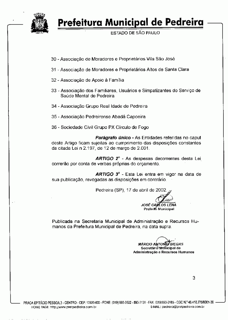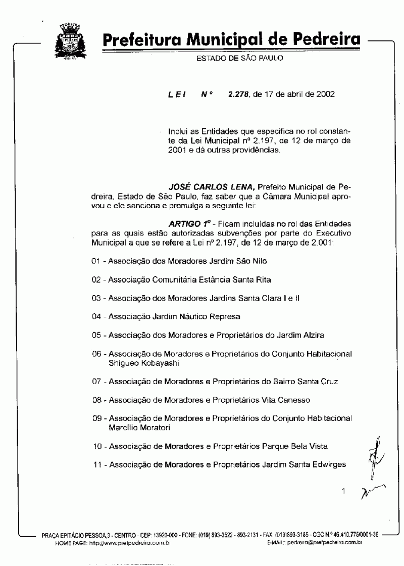 Lei Municipal - N° 2278 de 17/04/2002
