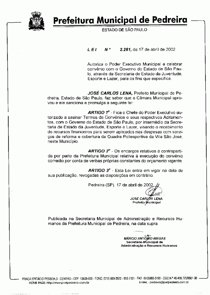 Lei Municipal - N° 2281 de 17/04/2002