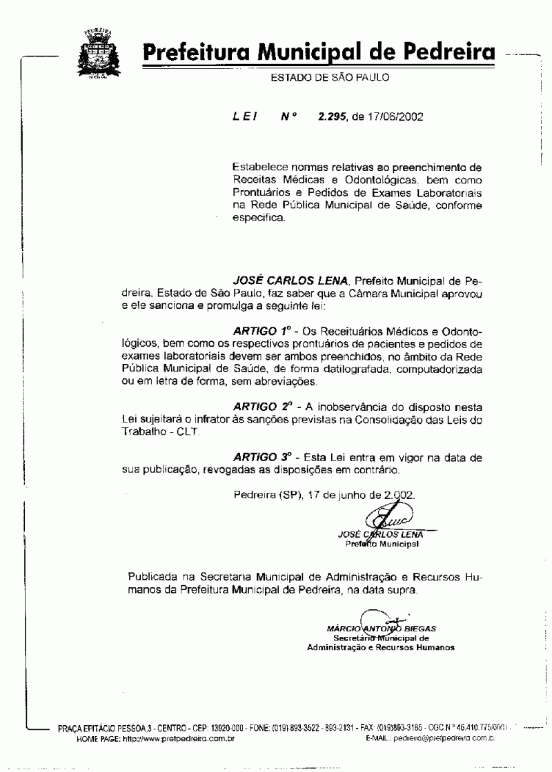 Ementa: Estabelece normas relativas ao preenchimento de Receitas Médicas e Odontológicas, bem como Prontuários e Pedidos de Exames Laboratoriais na Rede Pública Municipal de Saúde, conforme especifica.