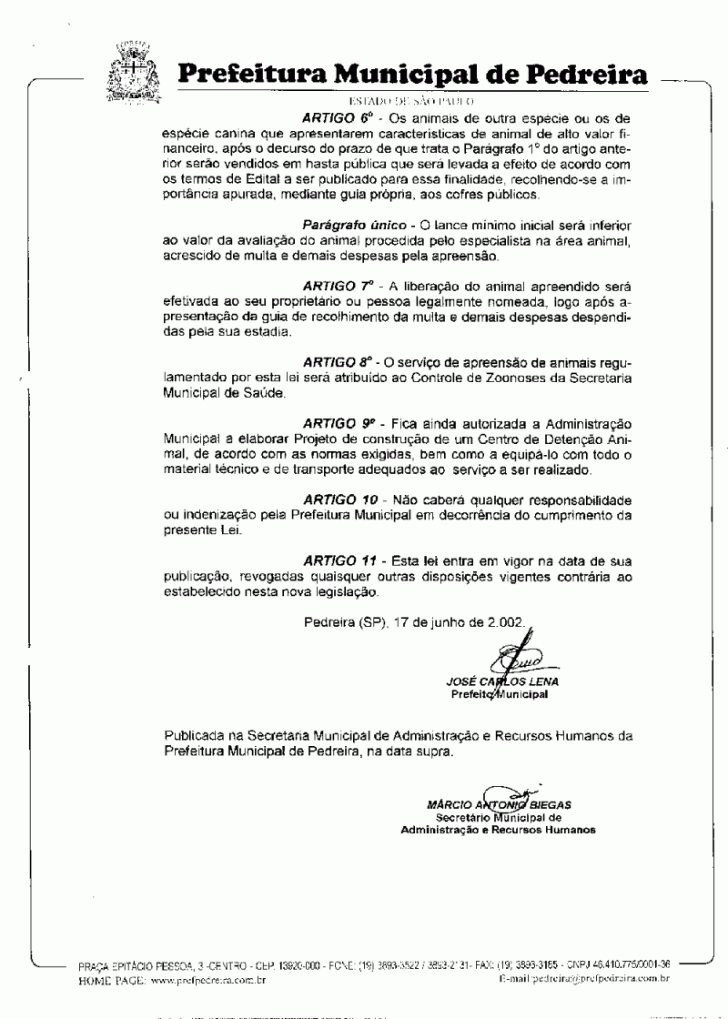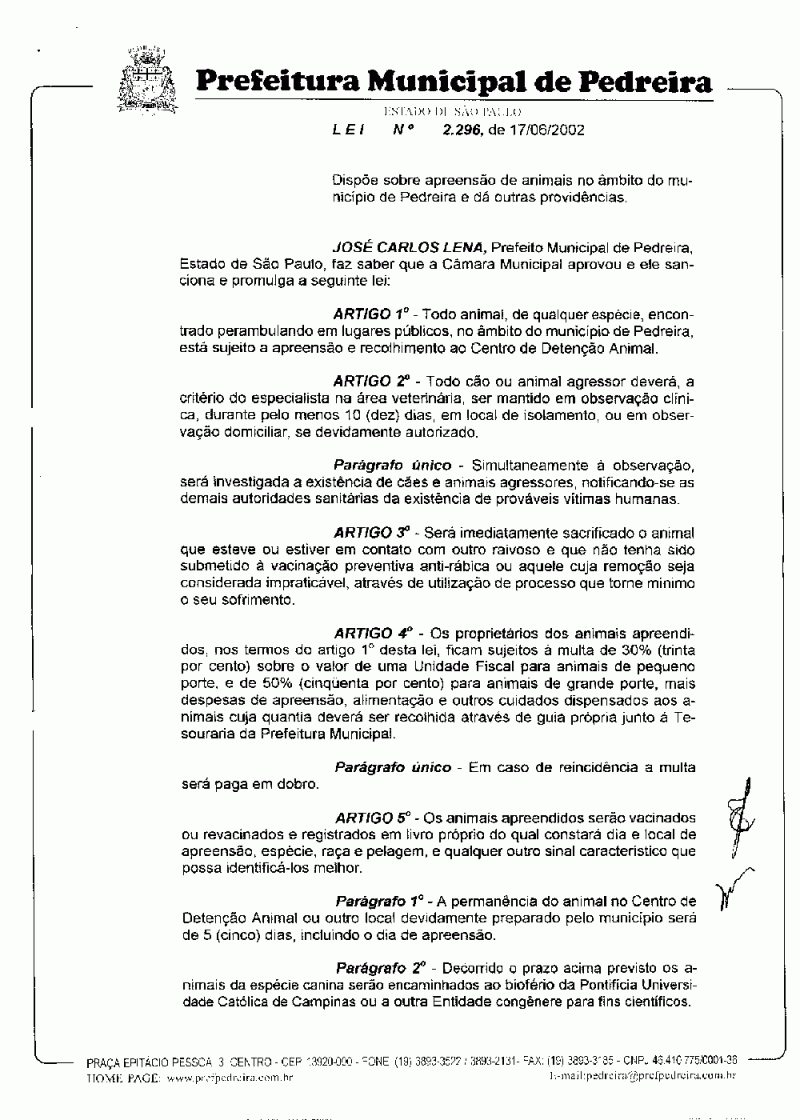 Lei Municipal - N° 2296 de 17/06/2002