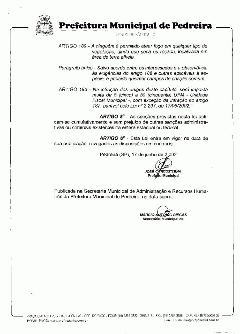 Lei Municipal - N° 2297 de 17/06/2002