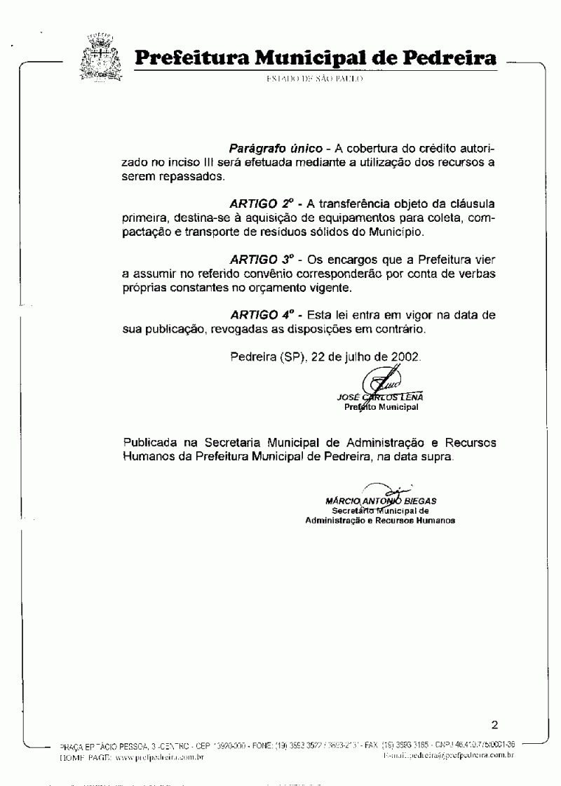 Lei Municipal - N° 2300 de 22/07/2002