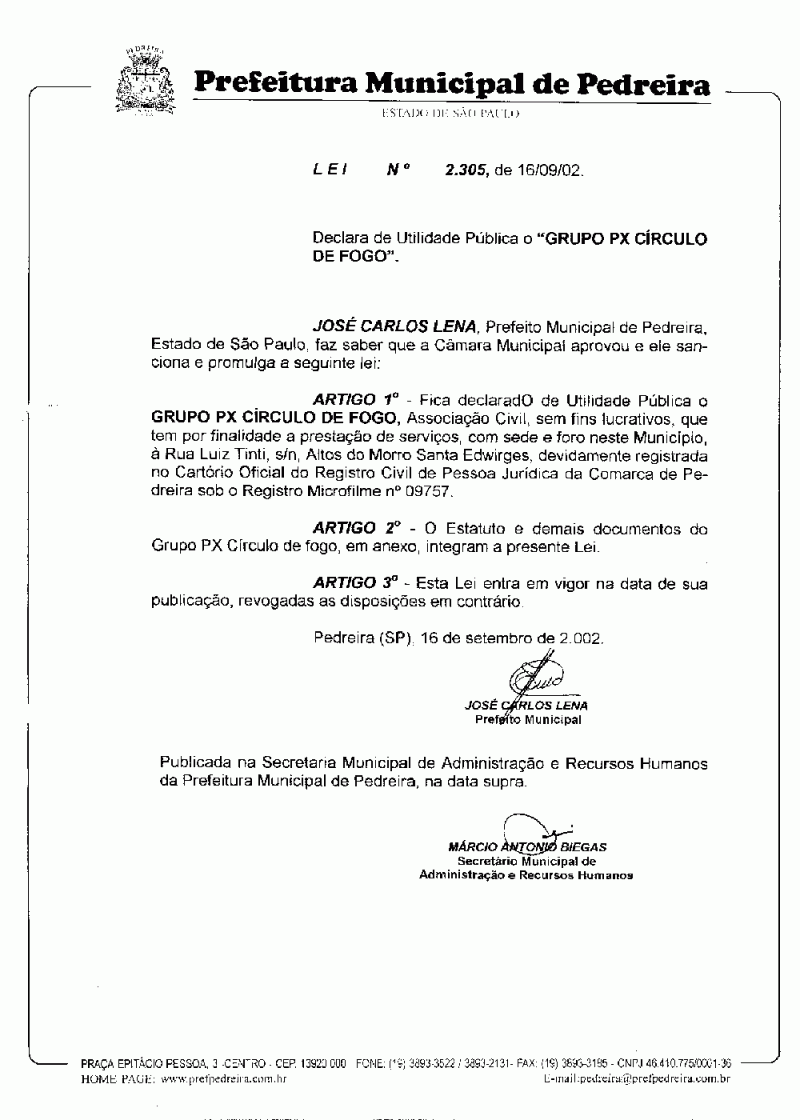 Ementa: Declara de Utilidade Pública o "Grupo PX Círculo de Fogo".