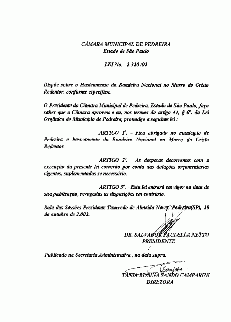 Ementa: Dispõe sobre o hasteamento da Bandeira Nacional no Morro do Cristo Redentor, conforme especifica.
