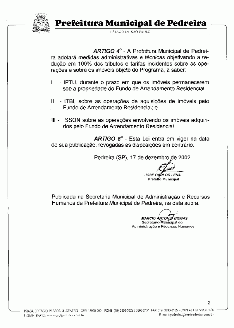 Lei Municipal - N° 2339 de 17/12/2002