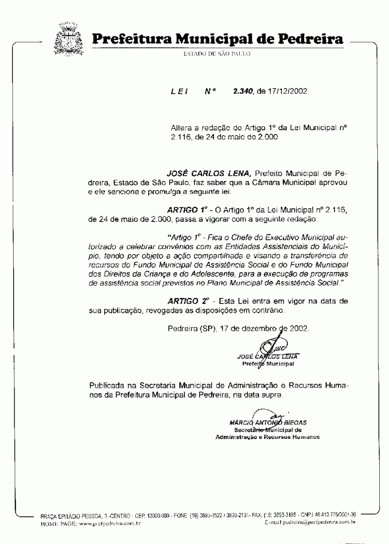 Lei Municipal - N° 2340 de 17/12/2002