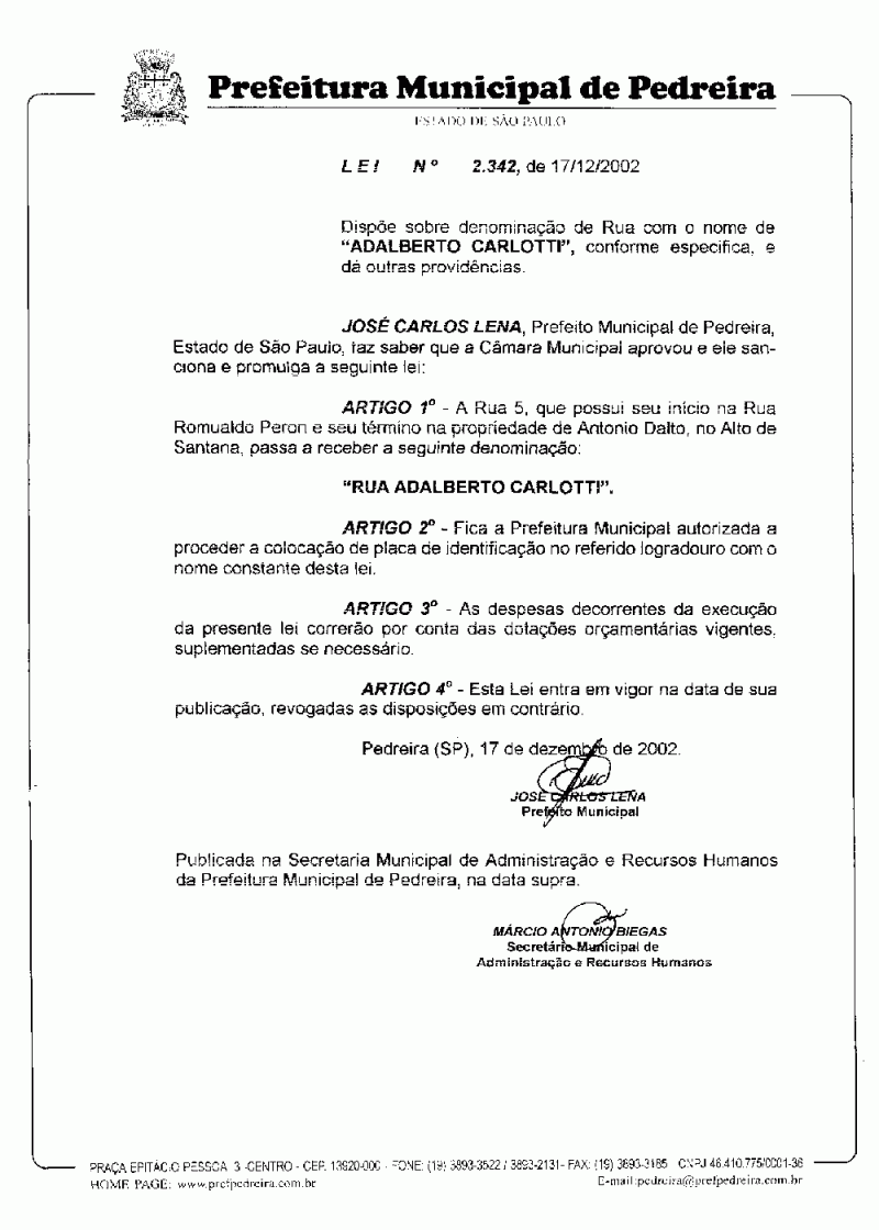 Lei Municipal - N° 2342 de 17/12/2002