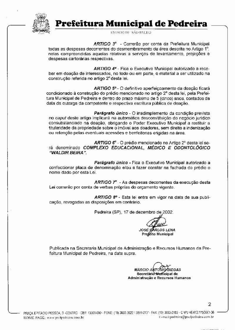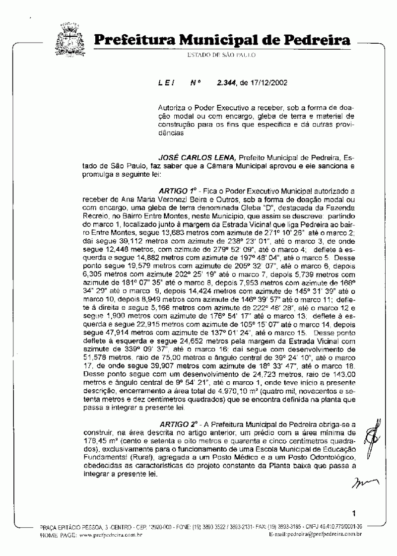 Lei Municipal - N° 2344 de 17/12/2002